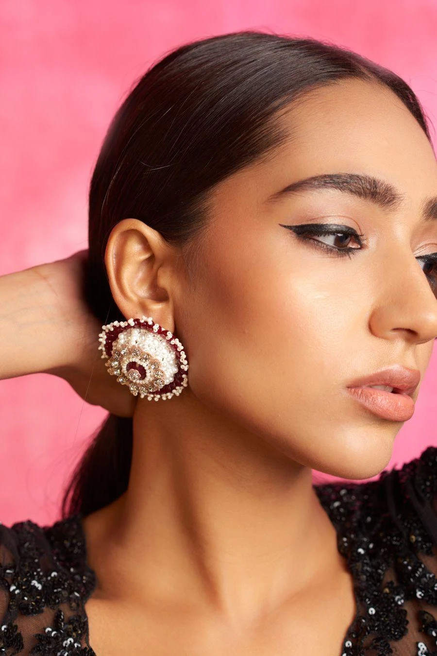 Material/Fabric : High-quality embellishments, red onyx