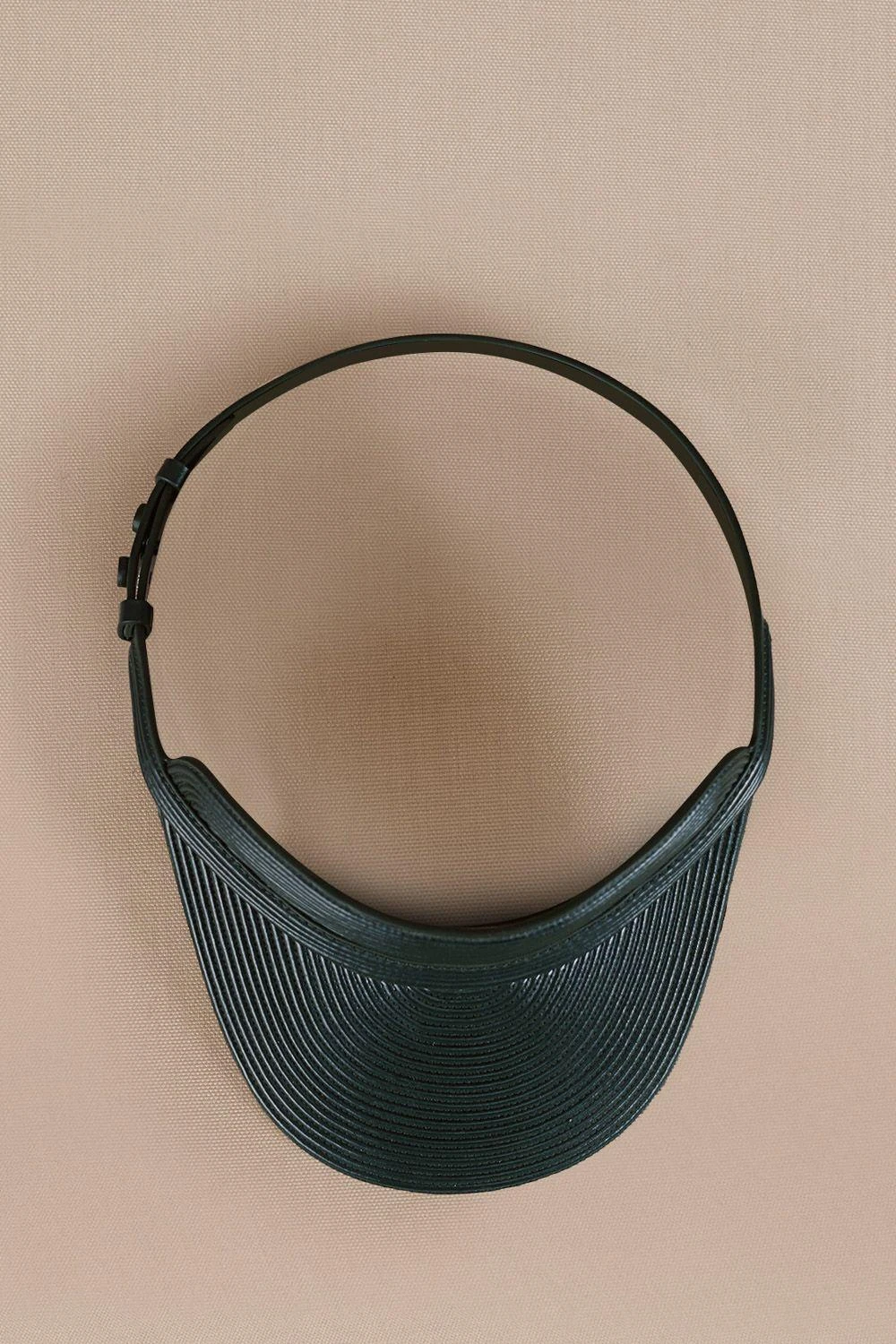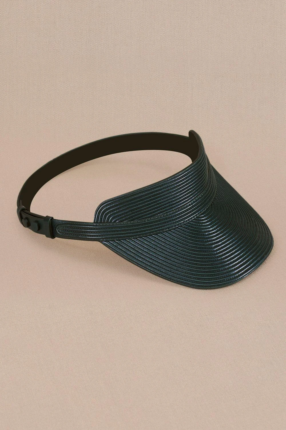 Indulge in opulence with the Maeen Visor, a green corded masterpiece, crafted from sumptuous leather. Elevate your holiday ensemble with this stylish accessory, embodying sophistication for a captivating day out.