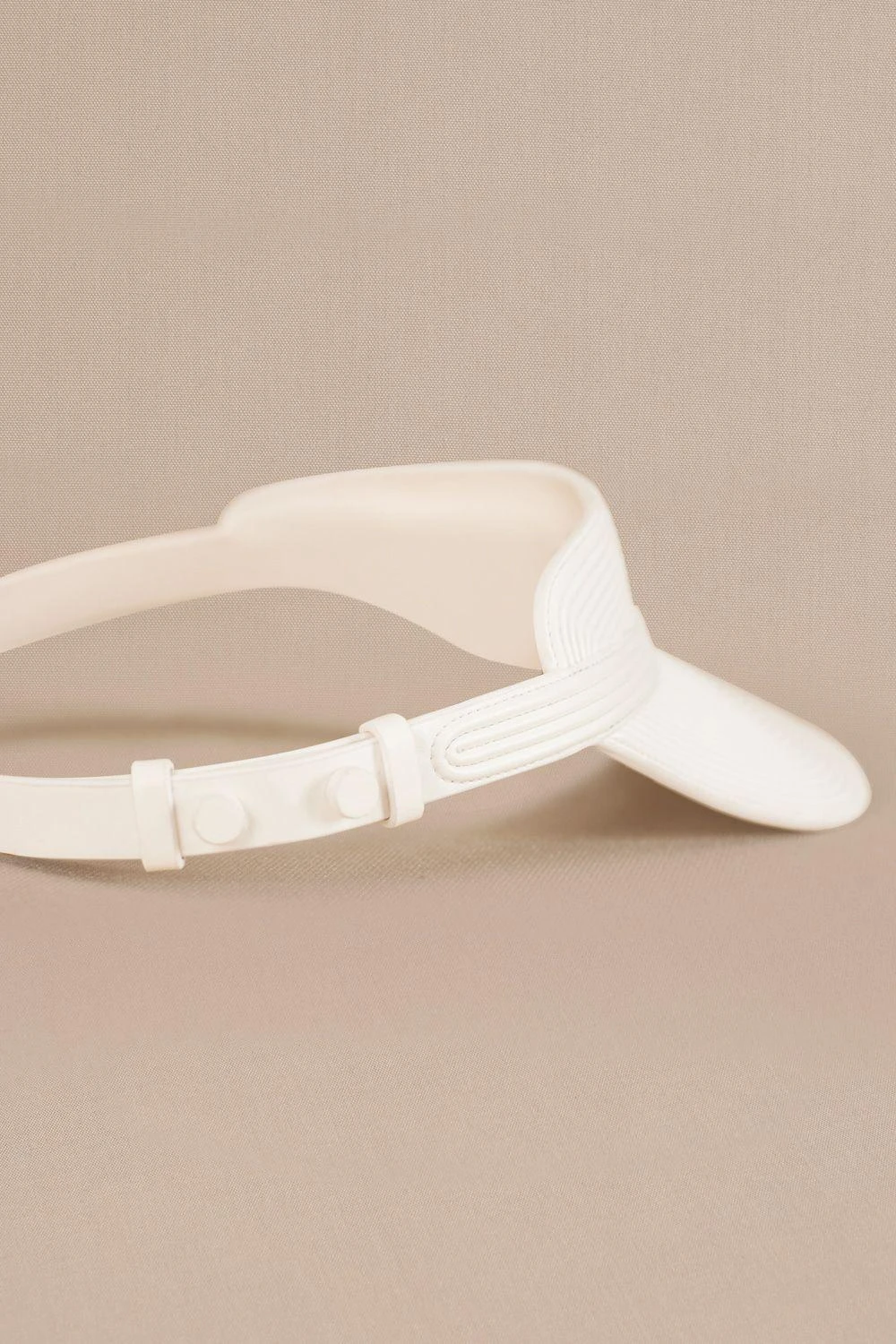 Discover the opulent Maeen Visor, an exquisite blend of white corded elegance crafted in luxurious leather. Elevate your holiday style with this chic accessory, a symbol of sophistication and flair. Embrace the allure of luxury fashion.