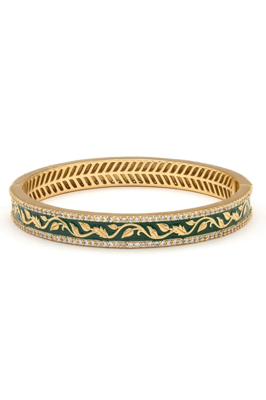 Indulge in the timeless elegance of this classic bangle, exquisitely crafted with a poetic composition of intricate enamel work layered with Morning Star stones.