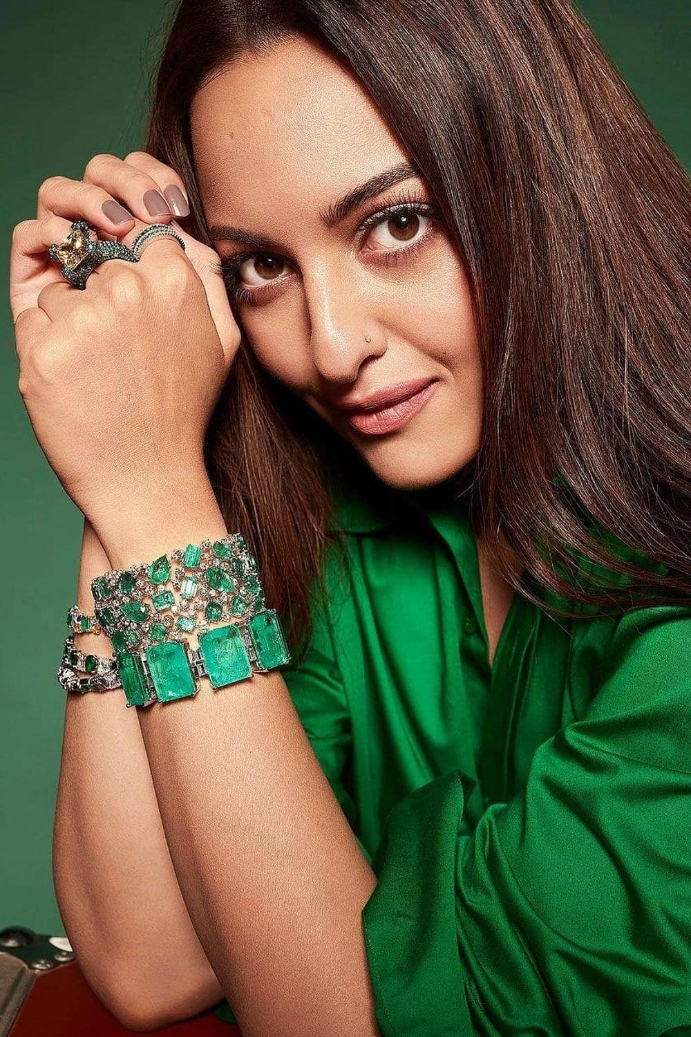 This exquisite crystal cuff bracelet is a great pick for the new millennial bride for a modern look. It is curated in 92.5 sterling silver with sparkling white Swarovski zirconia & green mix-shaped synthetic stones .