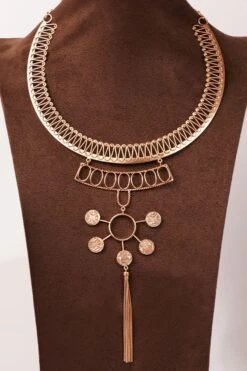 Add an eclectic element to your looks with this multi-coloured long necklace. It is crafted in colourful threads strung to stainless steel pendant and jute hangings. Style it with a plunging neck kaftan or dress.