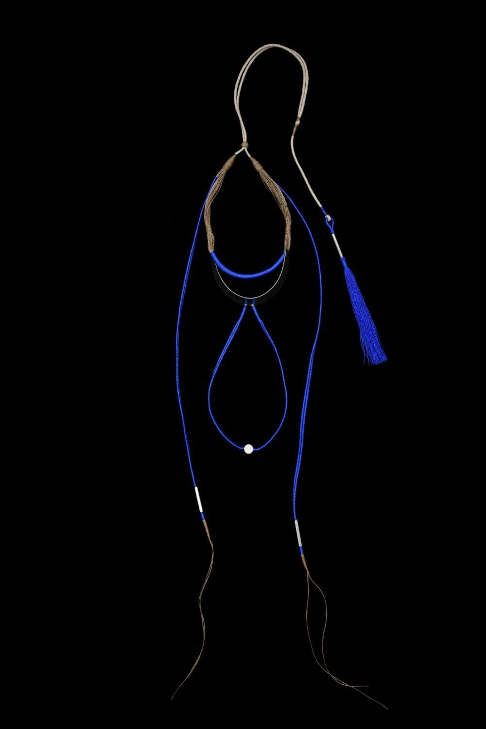 Make a chic style statement with this blue layered neck piece. It is crafted in blue thread, jute & stainless steel. You can style it with a crisp white shirt for a pop of colour.