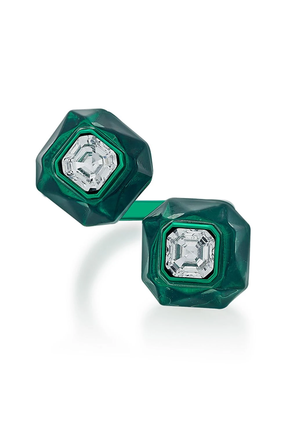 Embrace the allure of this open ring, a perfect blend of versatility and striking beauty. Sparkling crystals adorn Isharya’s infinity cut resin, set in captivating rhodium-plating.
