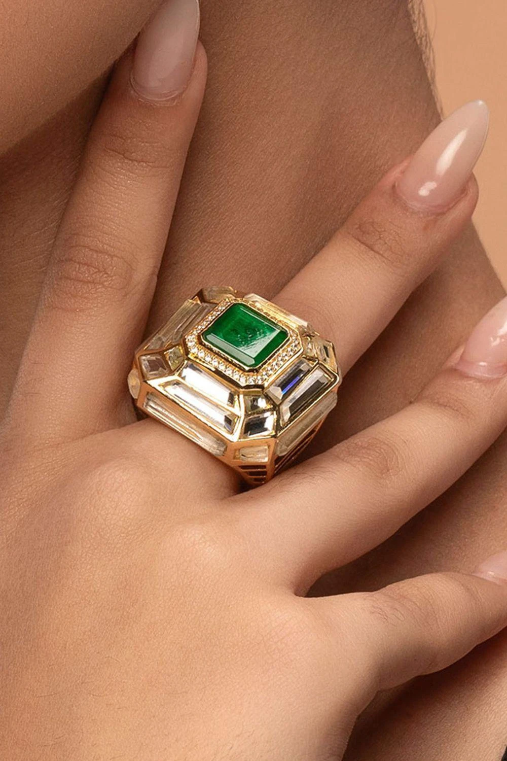 Material/Fabric : Mirror, Emerald Hydro stone,CZ & 18Kt Gold Plating