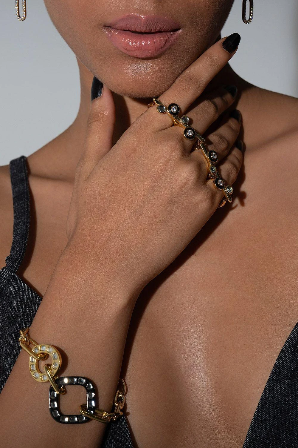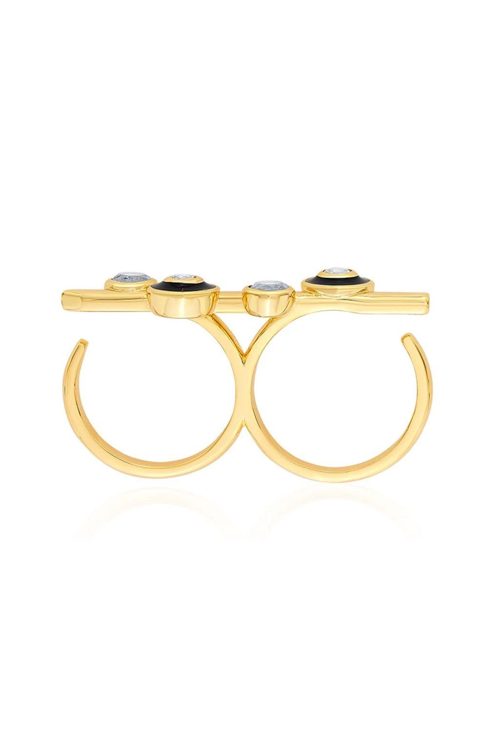Elevate your style with this timeless 18K gold-plated Ring, embellished with CZs and mirrors. This edgy yet elegant knuckle-duster design exudes luxury and personality.