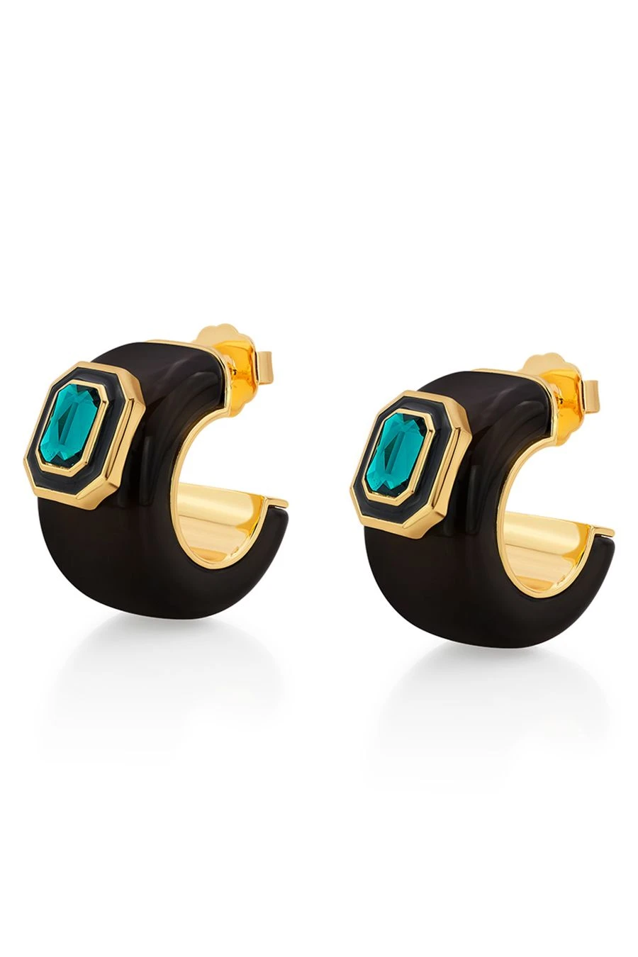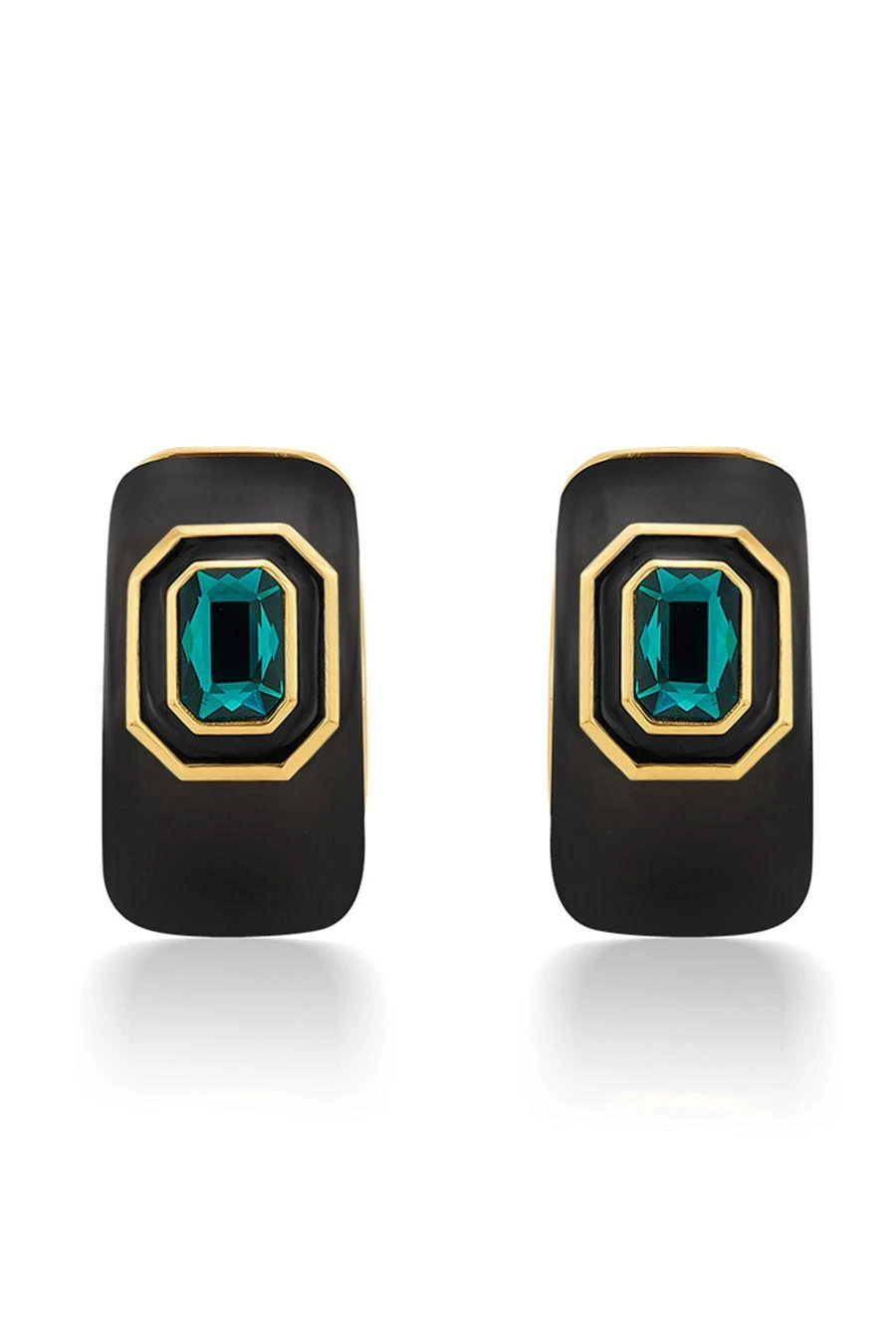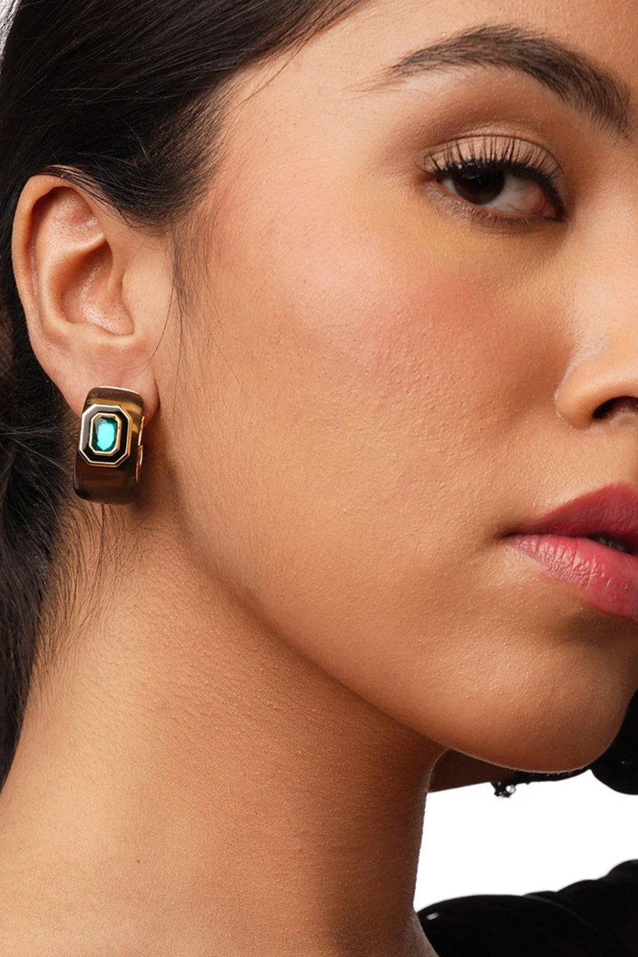 These 18-karat gold-plated resin earrings are encrusted with light-reflecting crystals and come in a chubby hoop silhouette. Take them from day to night with a loose bun.