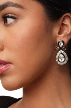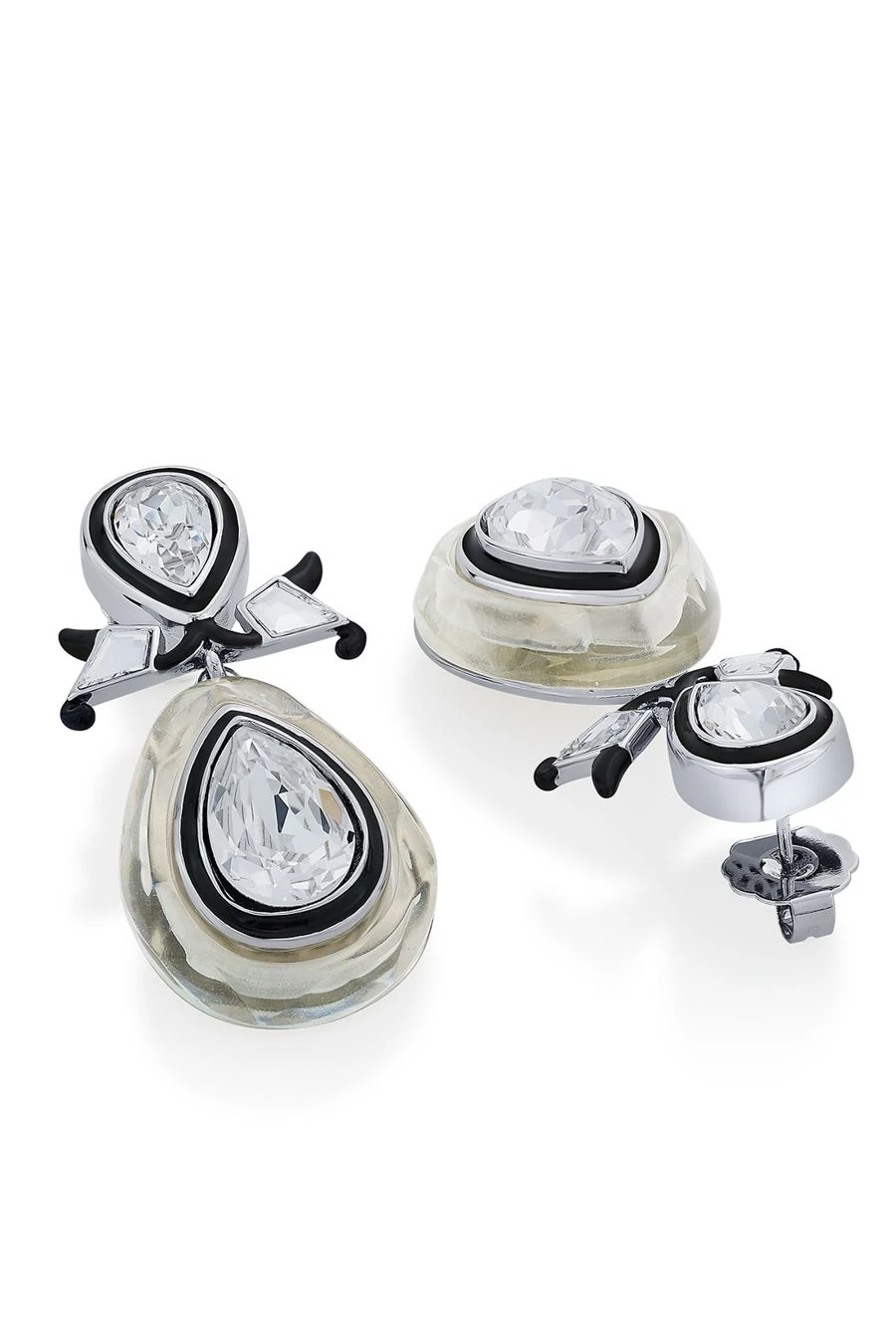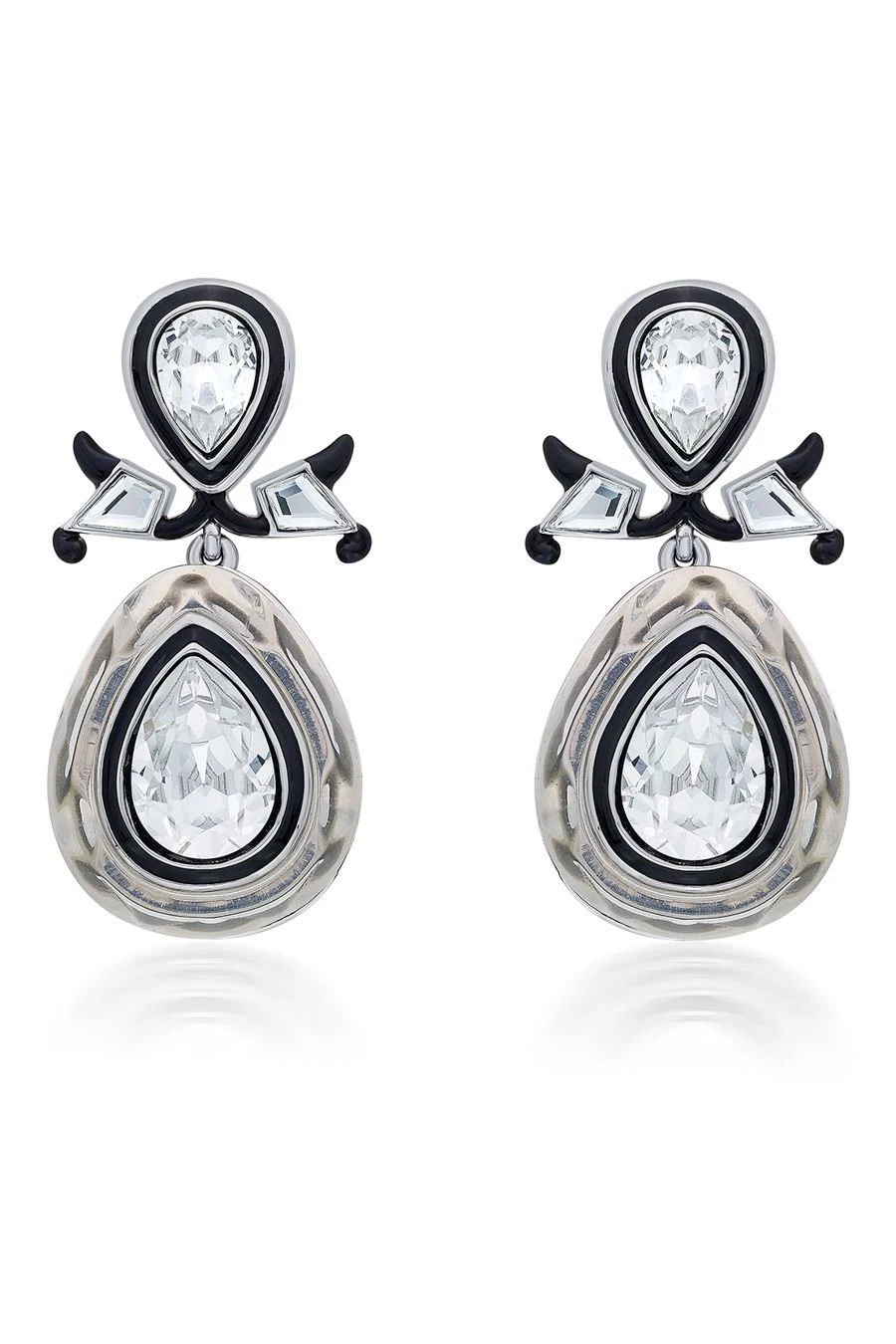 These rhodium-plated earrings are cast from sparkling crystals that dangle as you move and decorated with enameling. Wear them for a glamorous night out.