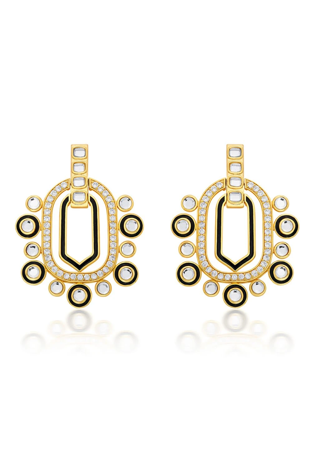 These captivating chandelier-shaped earrings, adorned with CZ, enamel, and shimmering mirrors, steal the spotlight effortlessly. Revel in their enchanting allure, as they become one of your favorite treasures, embodying the epitome of elegance.