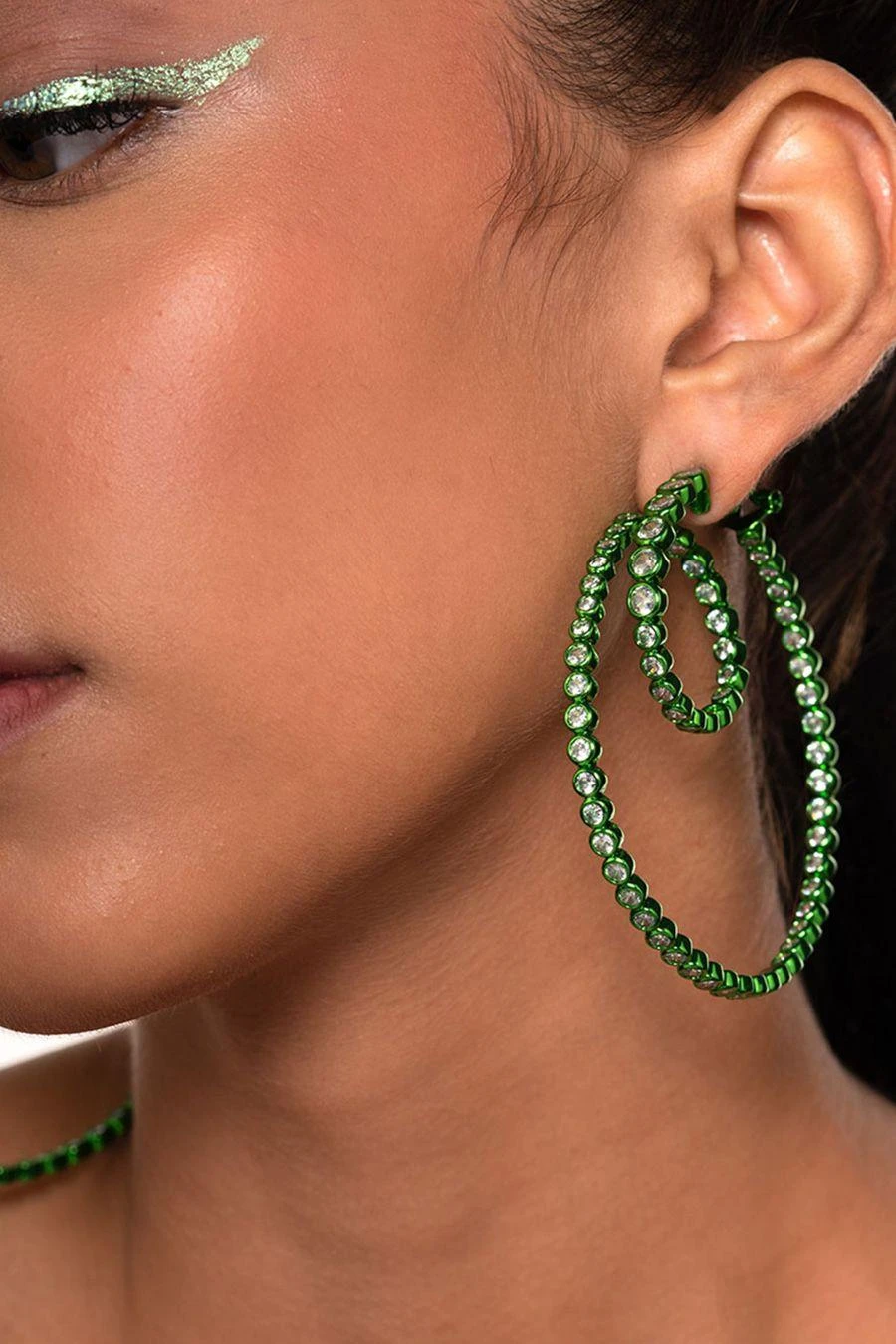 Material/Fabric : Cz, Signature Isharya Colored Plating,Hoop,Festive,Poppin,Ornate , Green