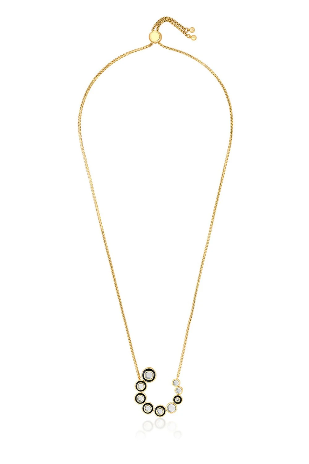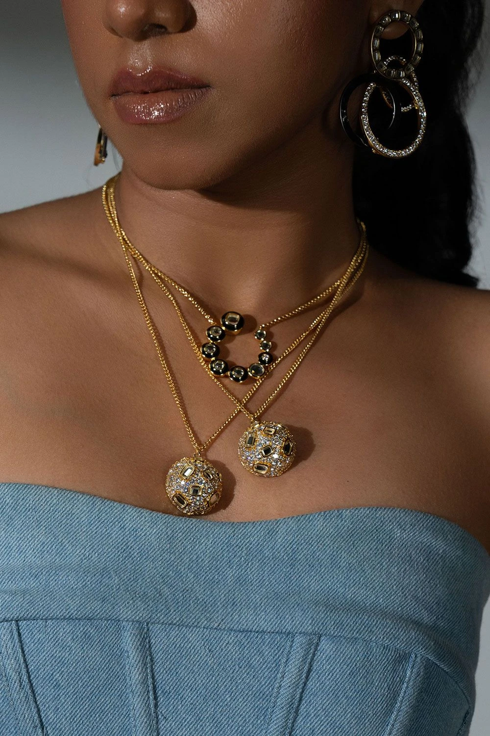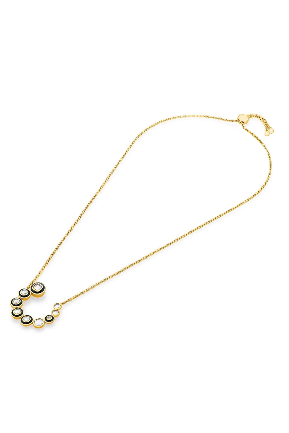 Elevate your outfit with a dash of personality through this 18-karat gold-plated necklace, adorned with CZ stones and mirrors. Its geometric design, accented with enamel, offers versatile styling options, perfect for both casual and formal occasions.