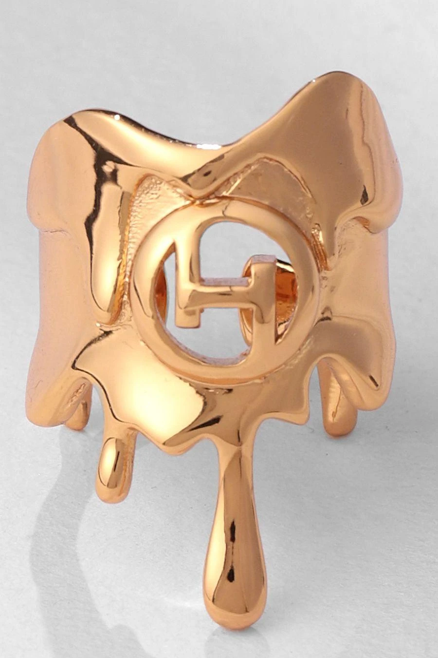 This gold molten ring is distinguished by the elegant and iconic aesthetic that sets it apart from others. Capturing the spirit of the OH Dripping logo, the ring is designed in a distinct form, finished in a classic 22KT gold finish.