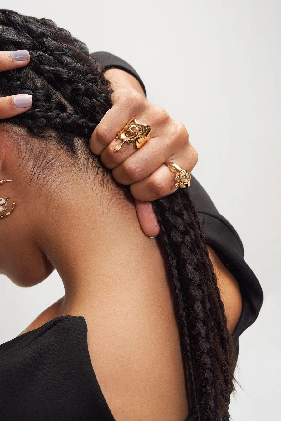 The gold petite ring has a perfect structure enabling it to be stacked effectively. Created to be both modern and timeless, the ring meets exquisite craftsmanship with a classic 22 KT gold finish and a unique pearl setting