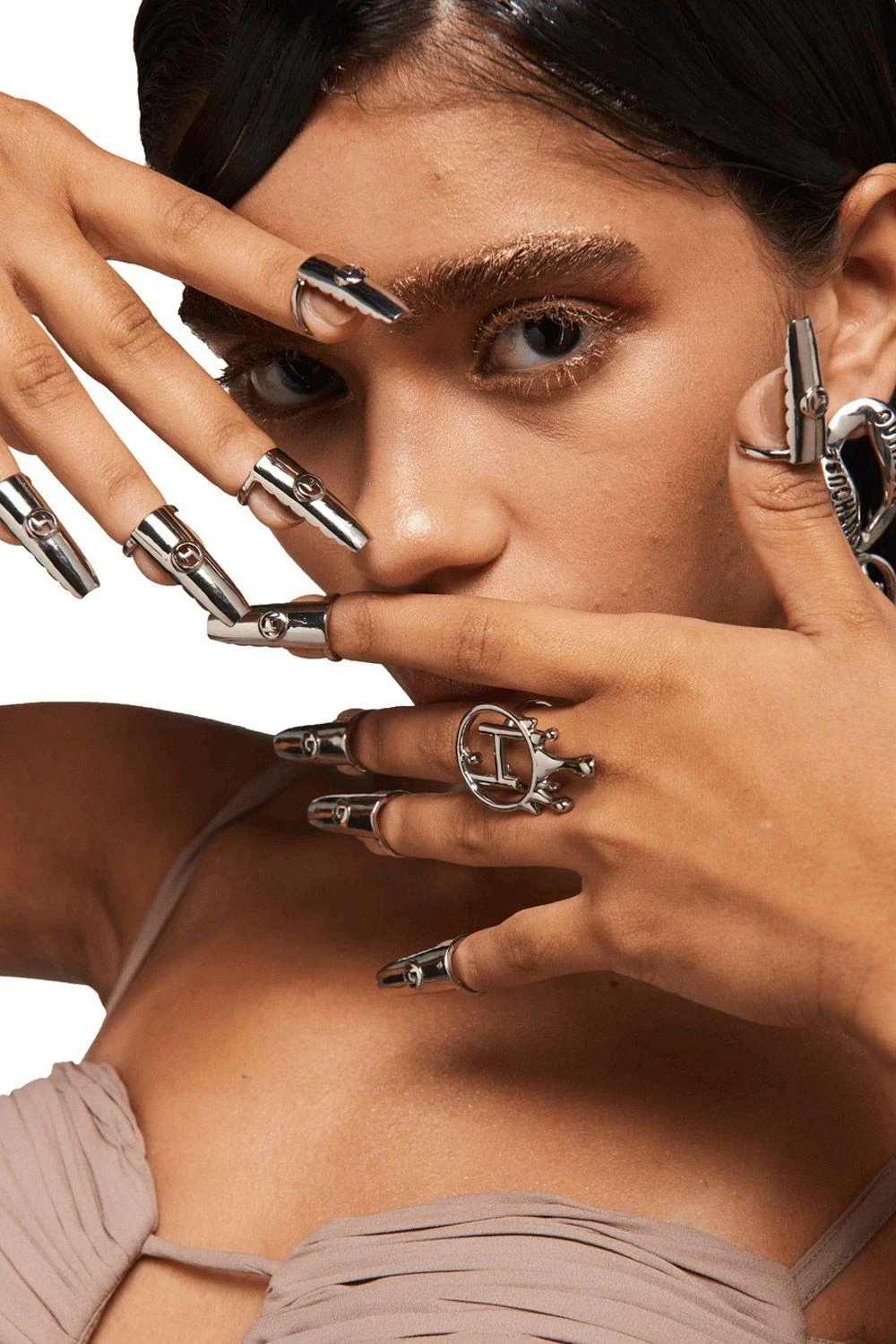 This ring presents itself in a classic 22 KT silver plating, that can be adorned to create a signature look. This charismatic creation can be adorned alone or even stacked with other pieces from the collection, to create the perfect evening look.