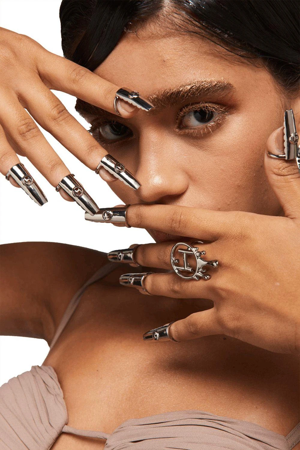 A contemporary design to embellish your fingers, this fingertip ring finished in 22 KT silver plating are shaped to give you a distinctive look. The lightweight feel is an easy way to add an extravagant statement to accessorise any outfit.