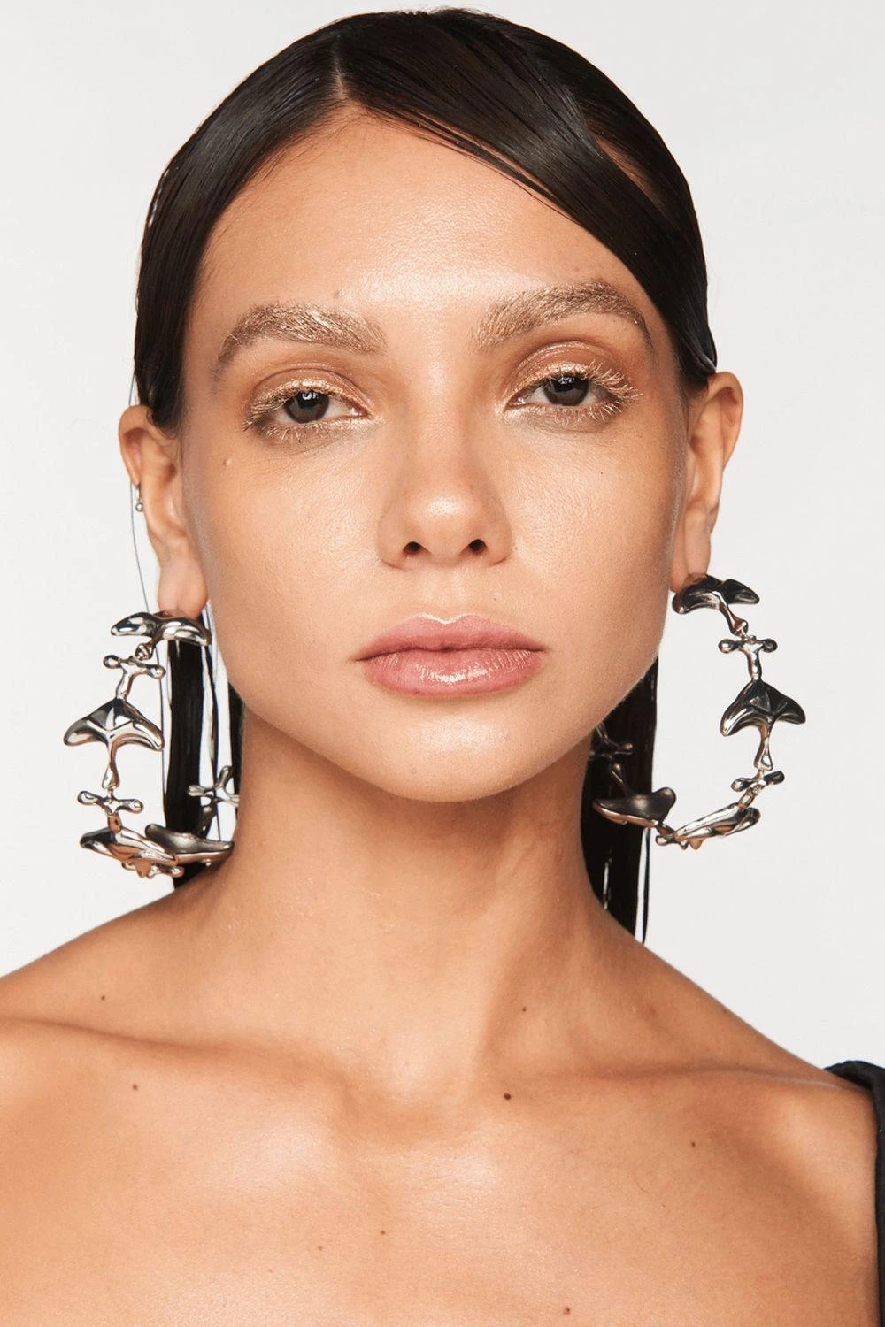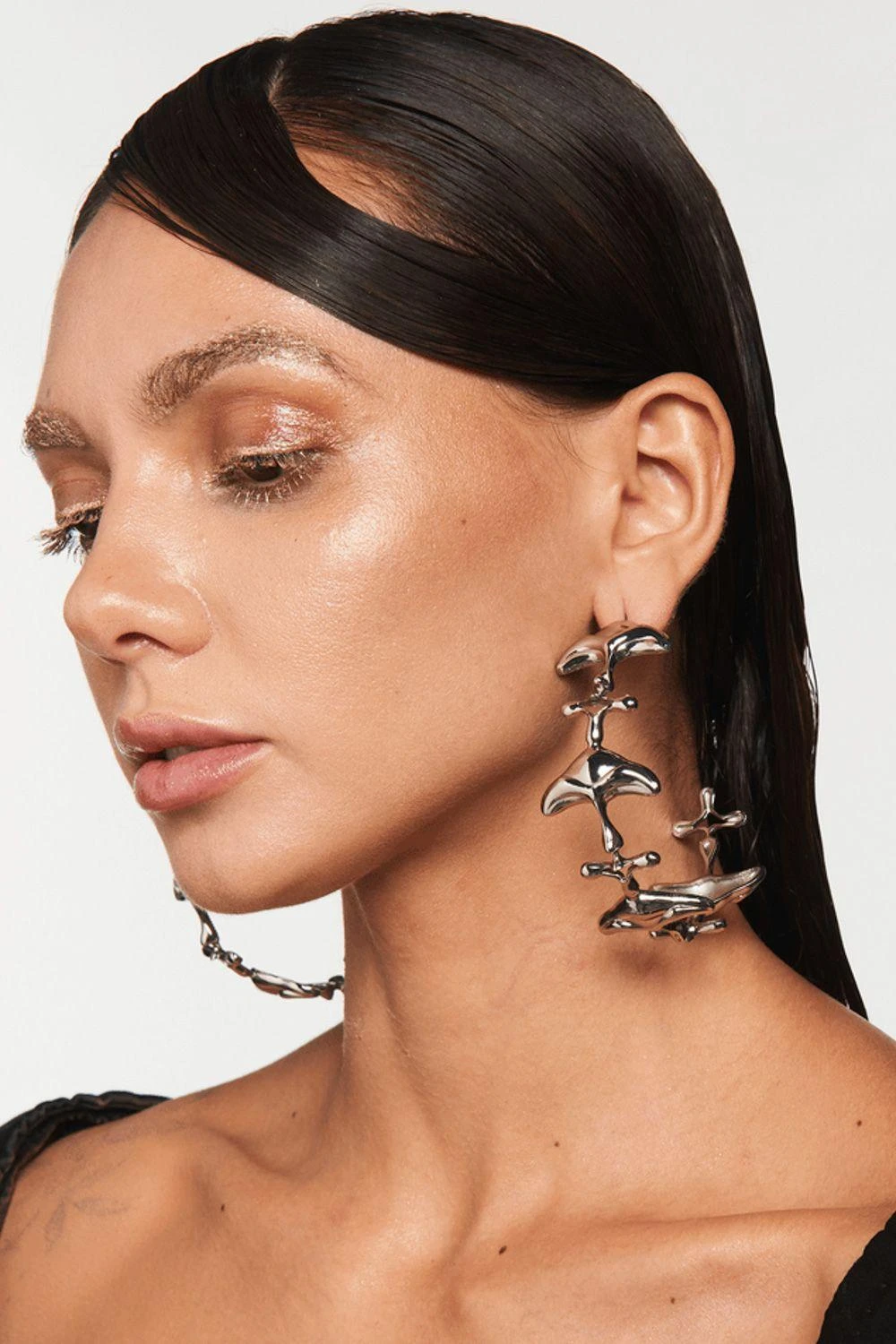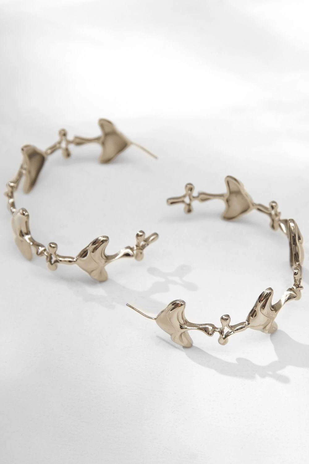 These shroomhead hoops are cast in 22 KT silver finish in a new iconic shape. The hoops can also be layered with dynamic dainty studs to create an exceptional voluminous effect.