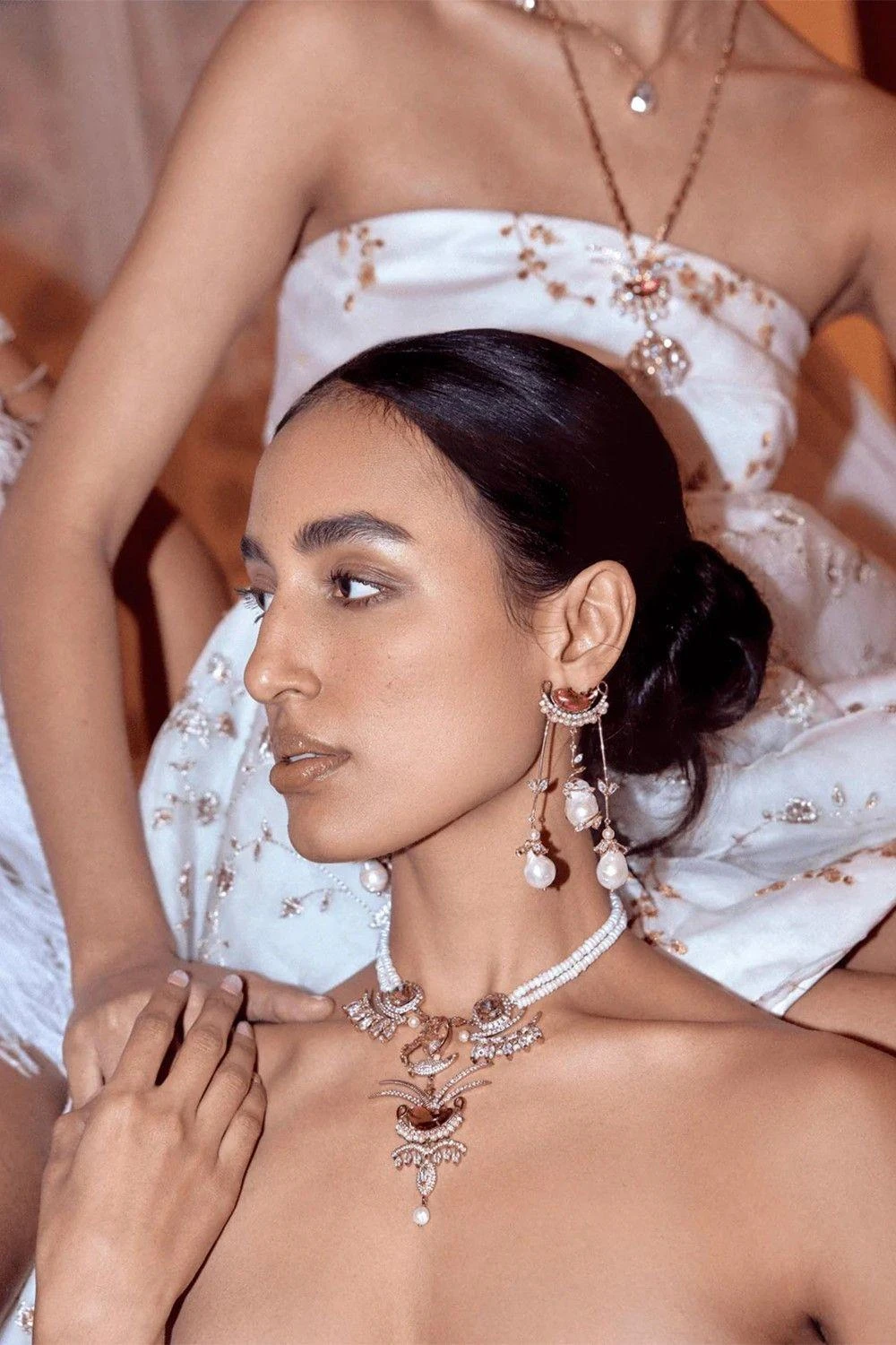 Material/Fabric : vintage rose swarowski crystals, clear cubic zircons and strings of dainty pearls