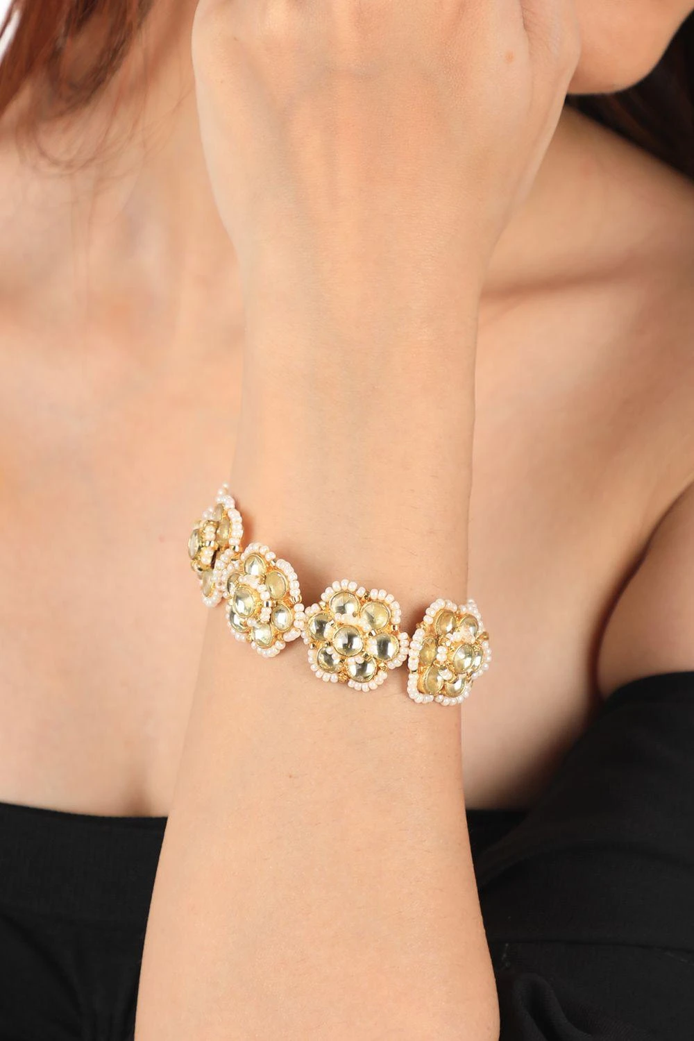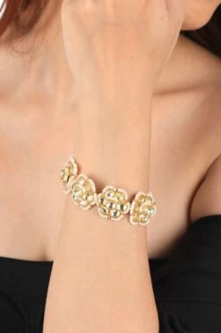 Indulge in luxury with the handcrafted 22kt gold-coated Graceful Serenity Gold Gem Bracelet. A floral masterpiece that elevates sophistication, a timeless adornment for your impeccable style.