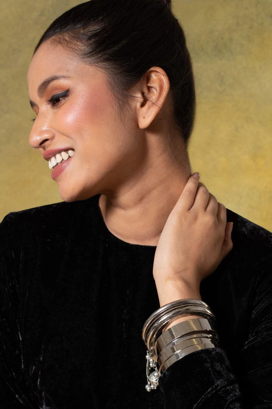 Experience the epitome of natural beauty & elegance with these bangles. A true work of art that seamlessly blends traditional materials with modern design. These gorgeous bangles exude a refined charm that is sure to elevate any ensemble.