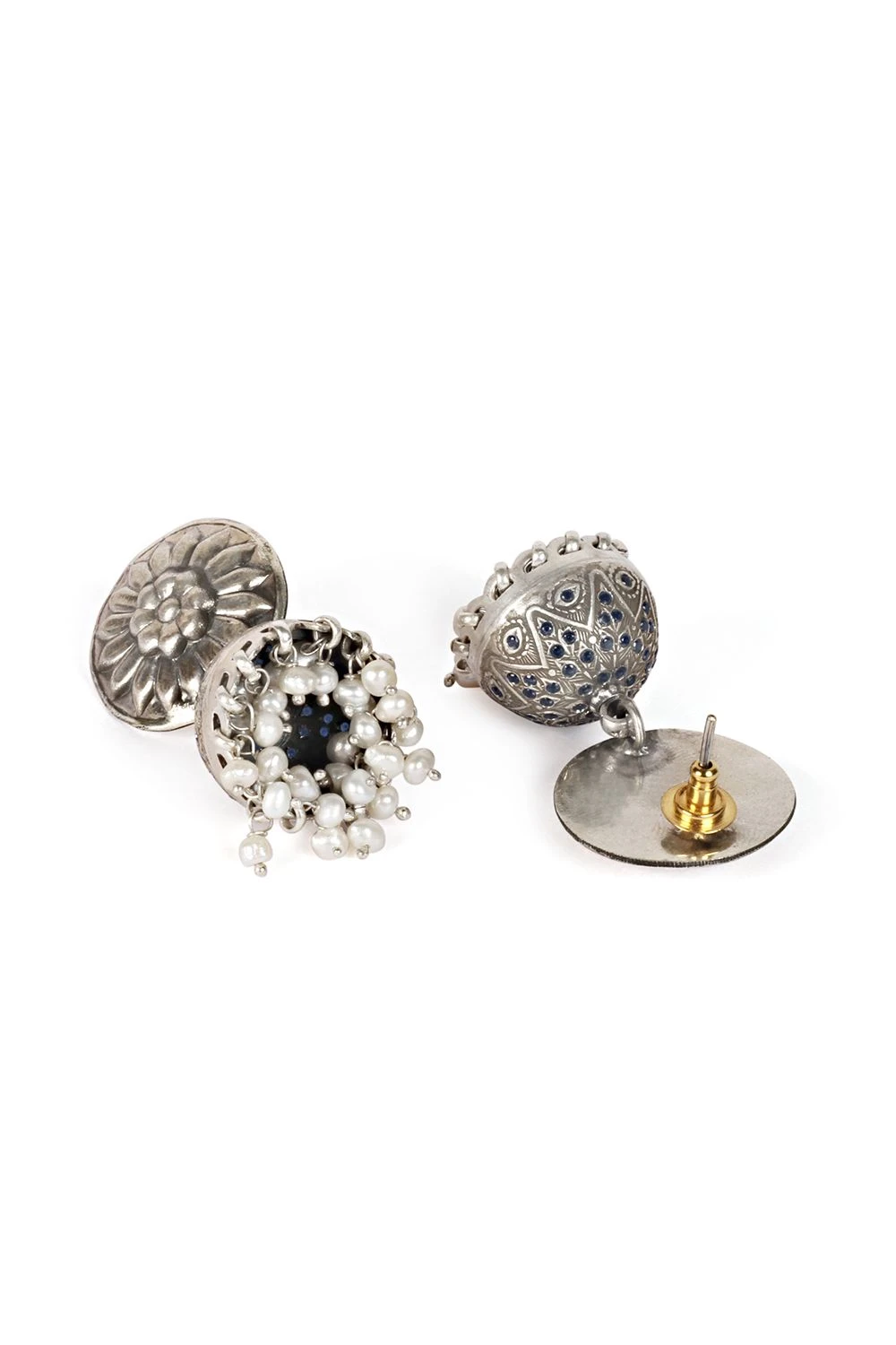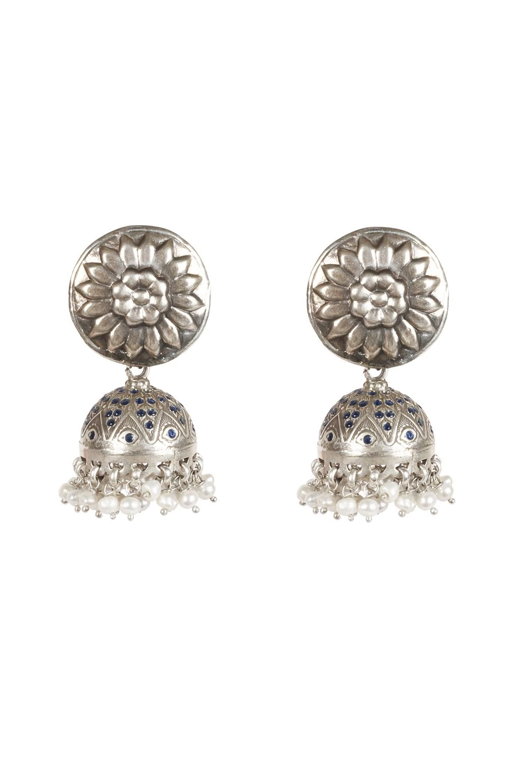 These elegant jhumka earrings are handcrafted in silver in a classic design with micro pearl balls. These understated earrings will surely make a staple piece in your collection.