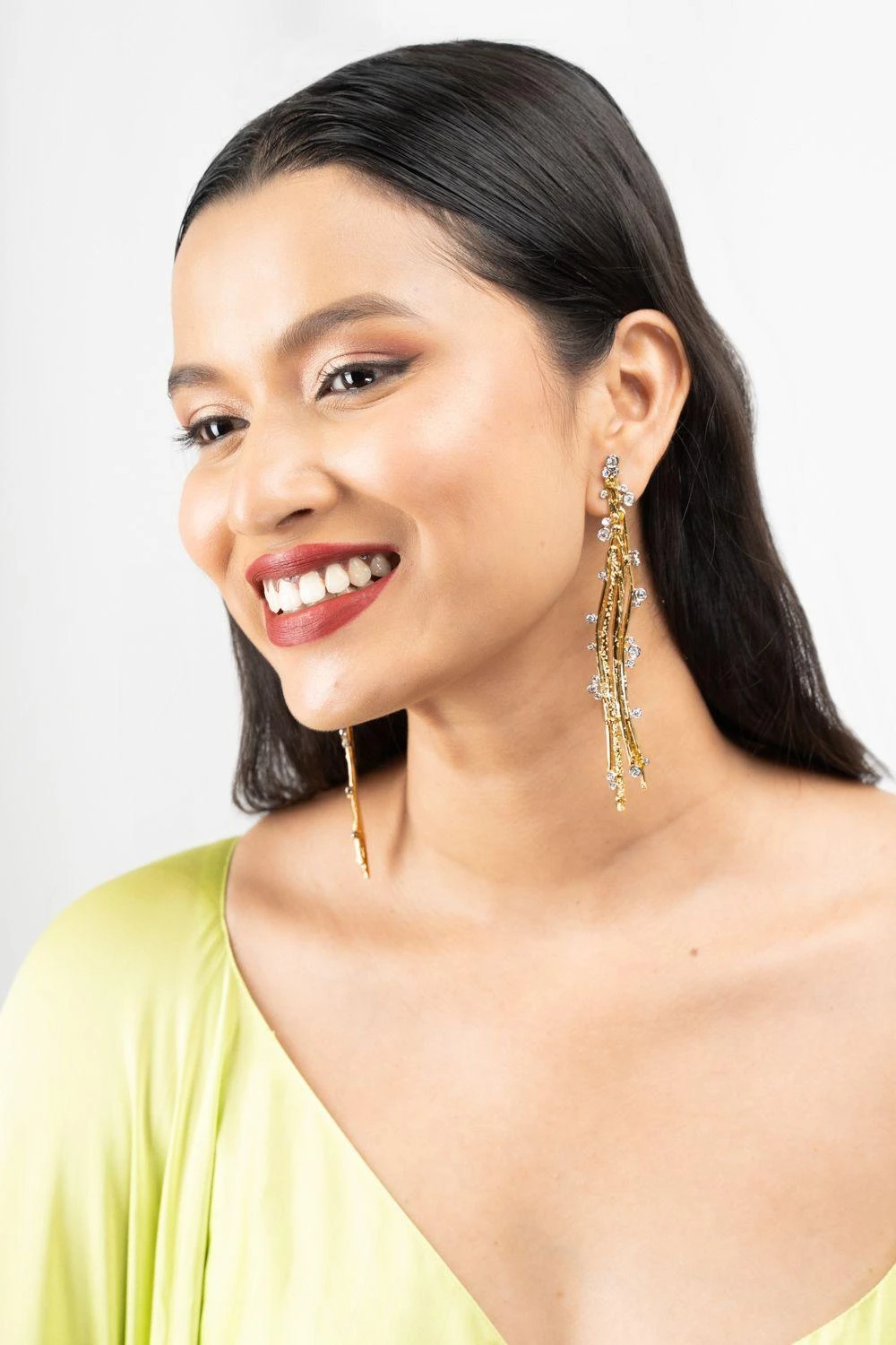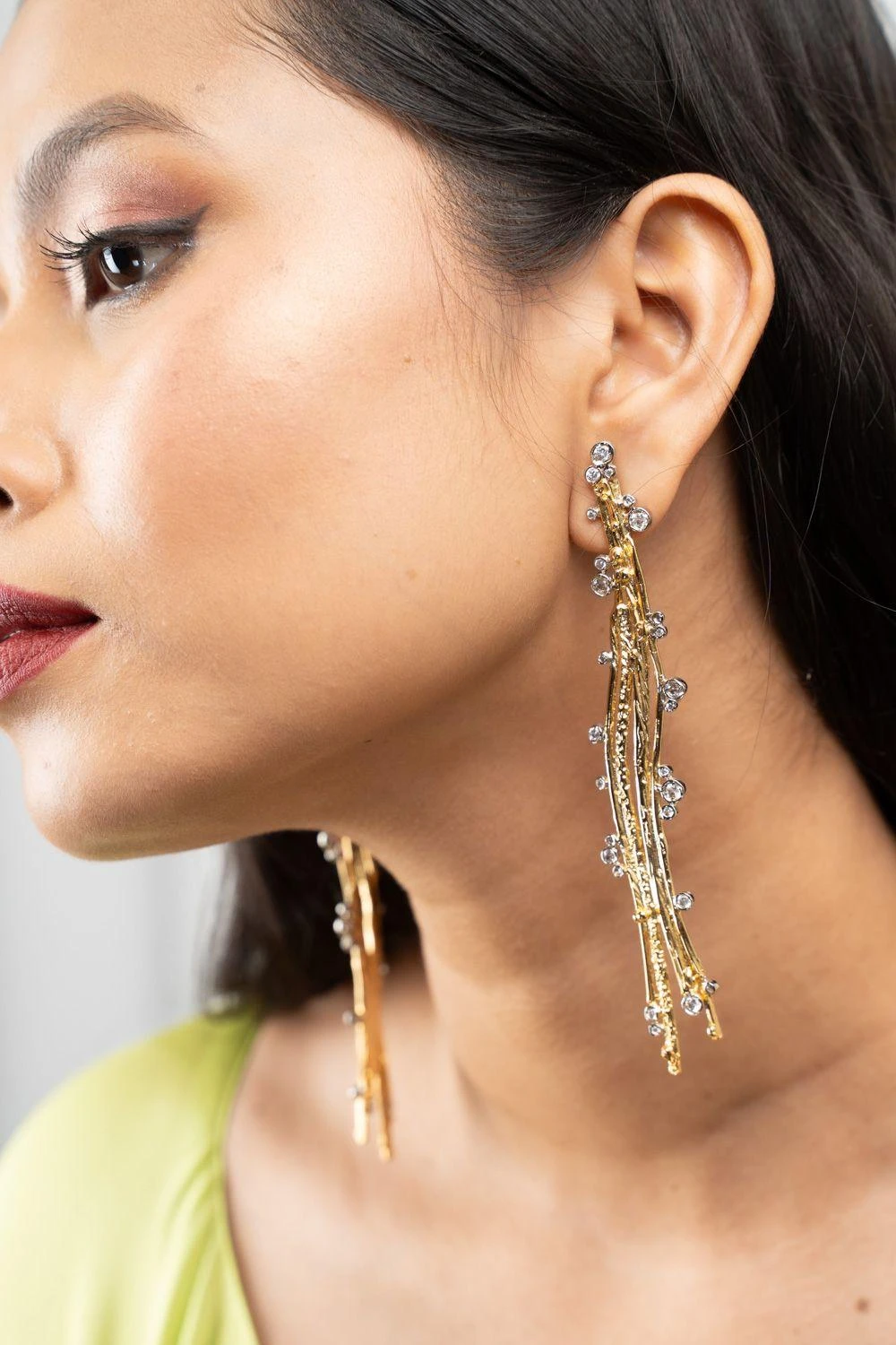 Elevate your style with the Jewelled Twiggy Earrings, a harmonious blend of elegance and sophistication. These exquisite earrings are adorned with sparkling gemstones, adding a touch of luxury to your ensemble.