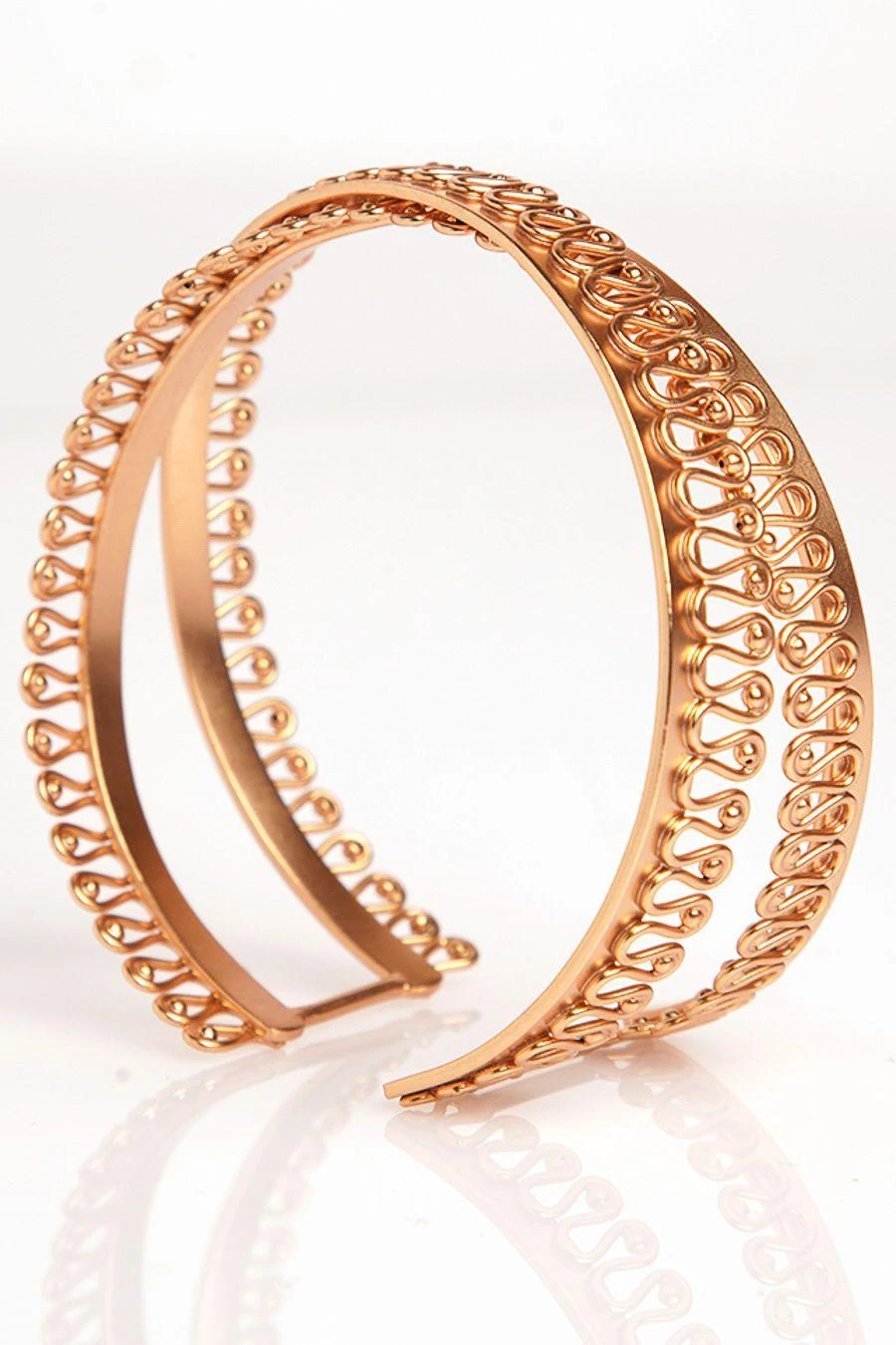 This scene-stealing cuff is an instant pick-me-up to any look. Crafted in 22K Gold Plated Copper, this Sand dunes wire cuff instantly spruces up your outfit. Pair them with a cocktail dress and pulled-back hair.