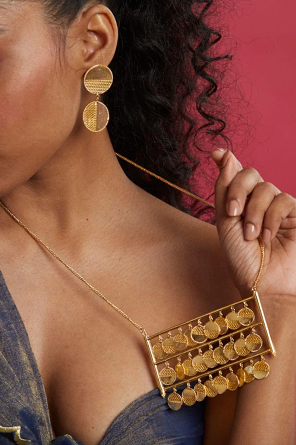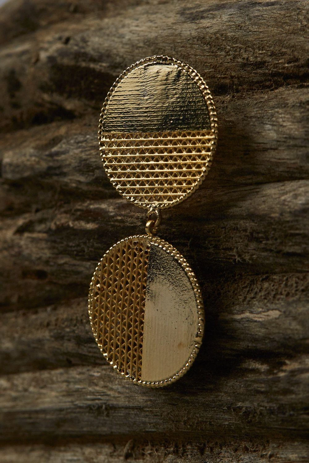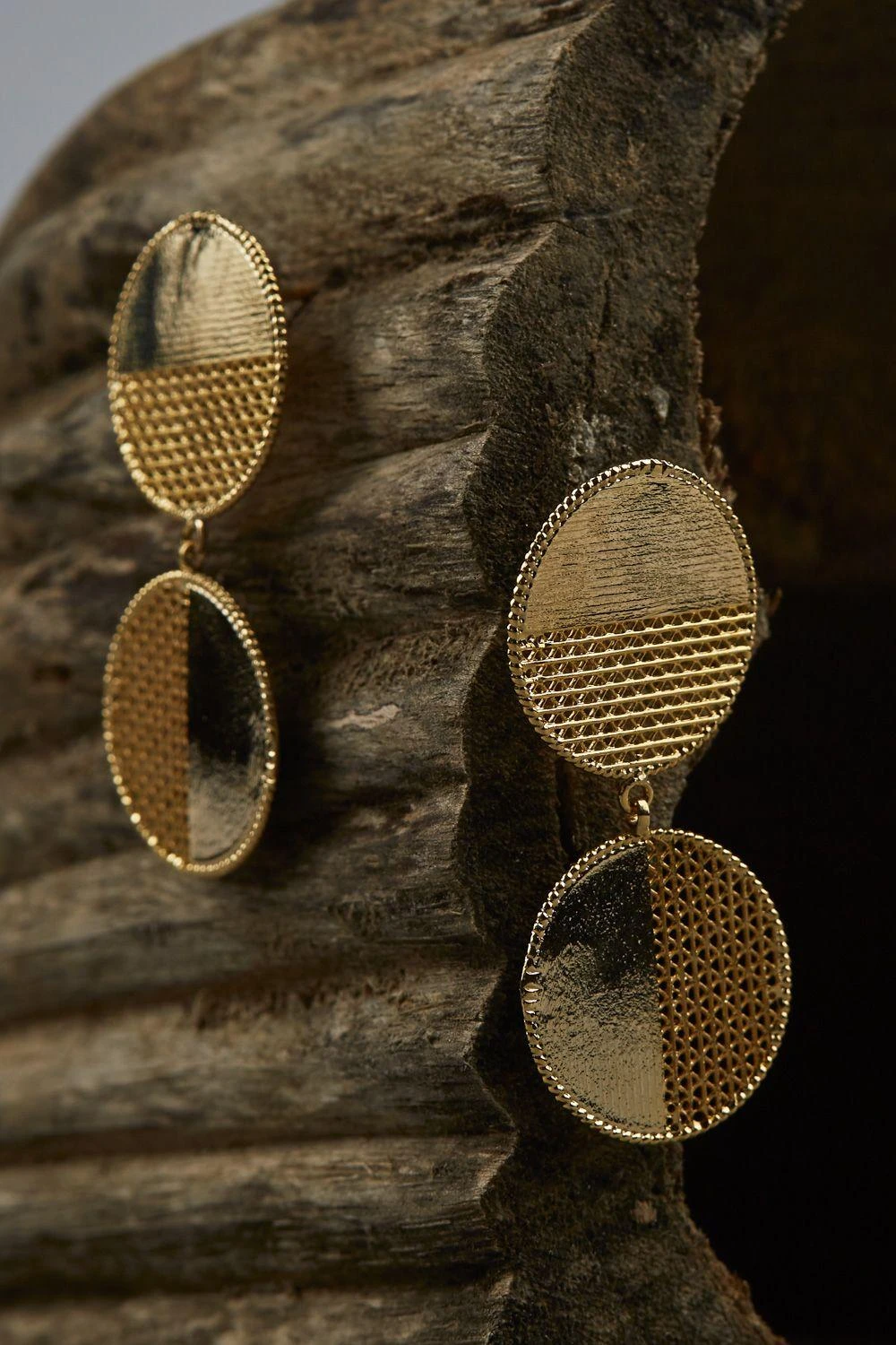 Material/Fabric : Reclaimed brass body with 92.5 silver earposts. Plated with 22K gold.