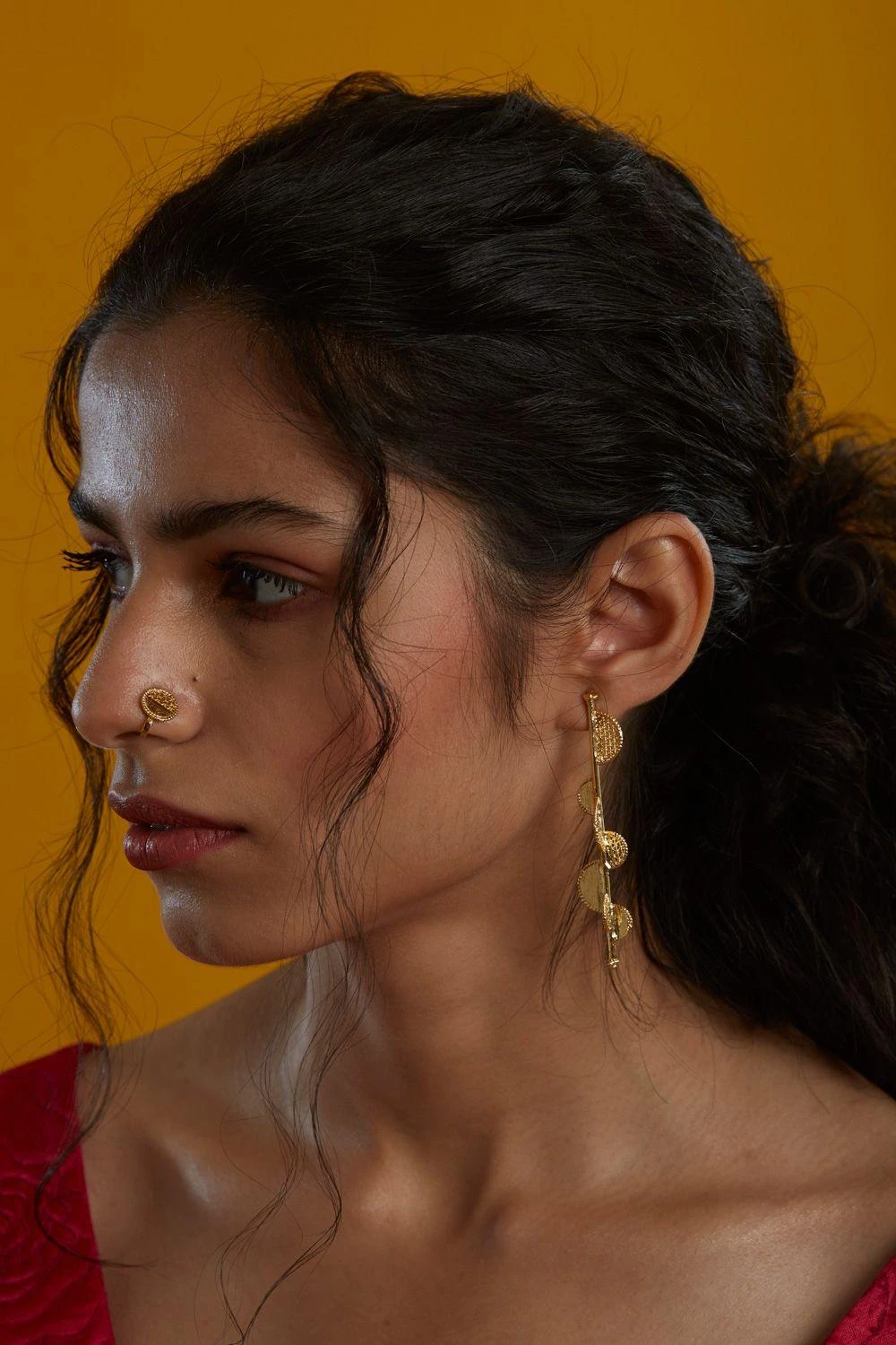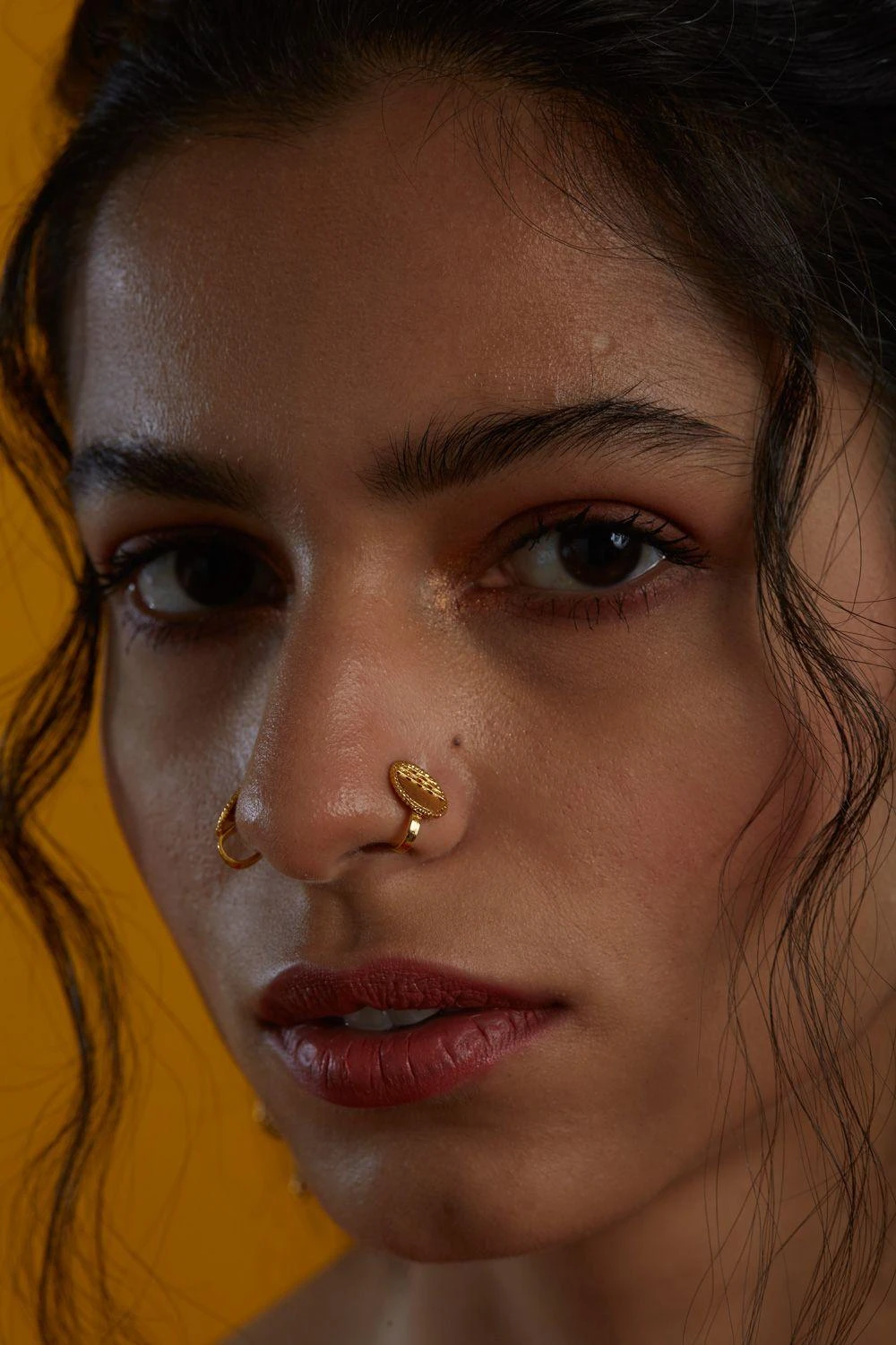 This lustrous gold clip-on nosepin adds a touch of chic sophistication to your look. A subtle statement of style