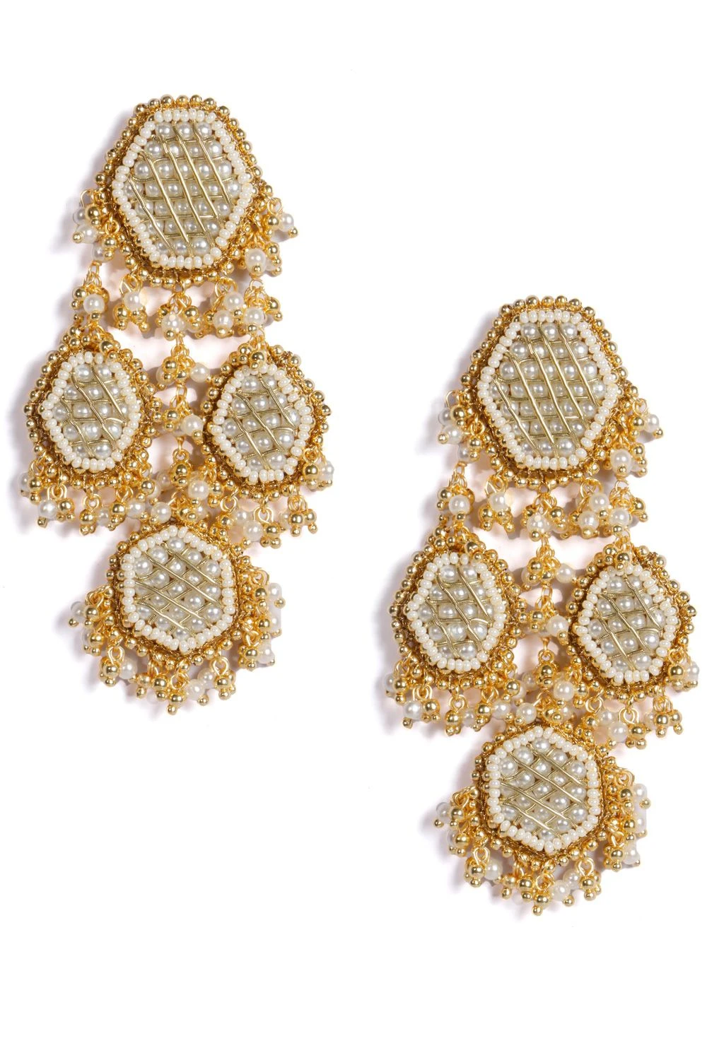 Elevate elegance with these gold finish earrings. Meticulously crafted, these pieces embody sophistication and grace, adding a touch of timeless beauty to your ensemble.