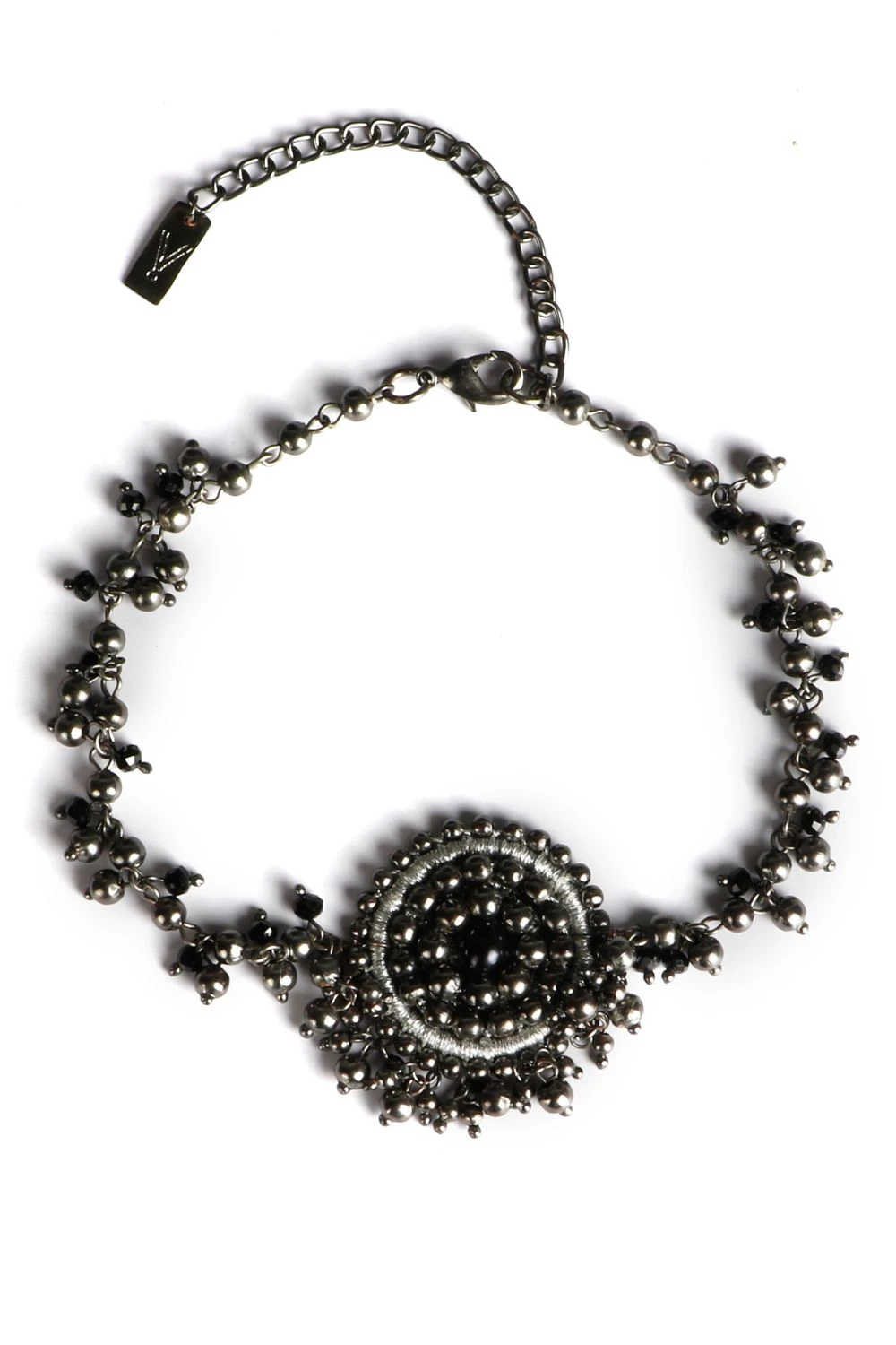 An absolute classic piece, this choker is a mix of beautiful round beads held together with grey thread. It would be a charming addition to your jewellery collection and makes a perfect evening accessory.