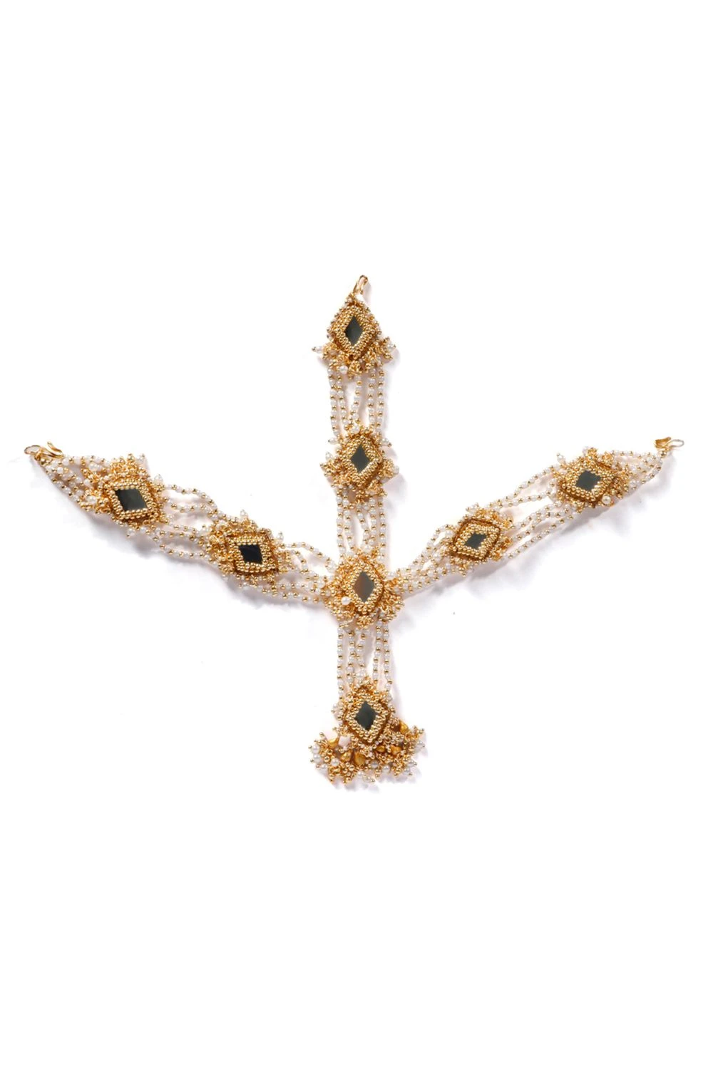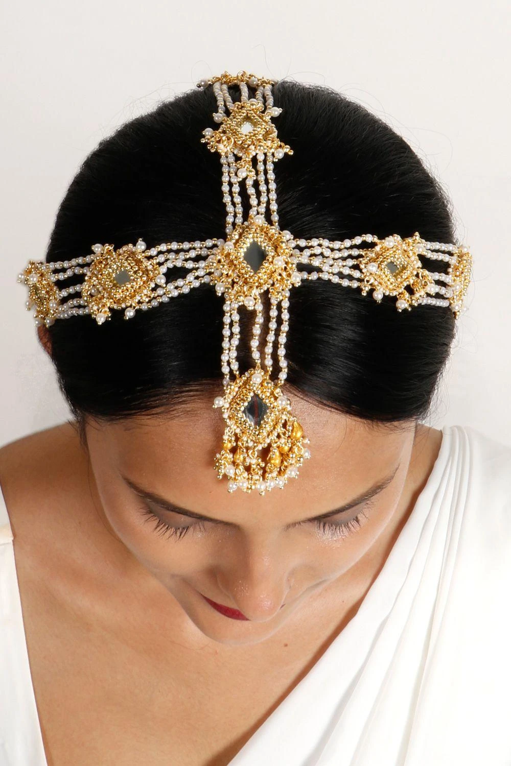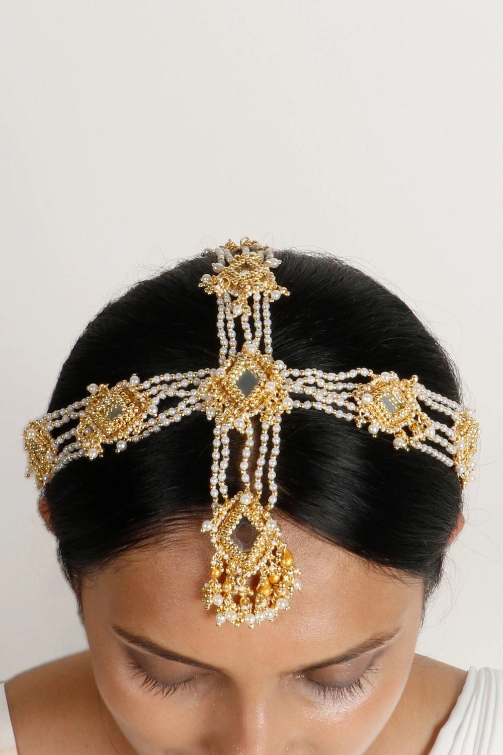 Elevate elegance with this gold finish mathapatti. Meticulously crafted, this piece embodies sophistication and grace, adding a touch of timeless beauty to your ensemble.