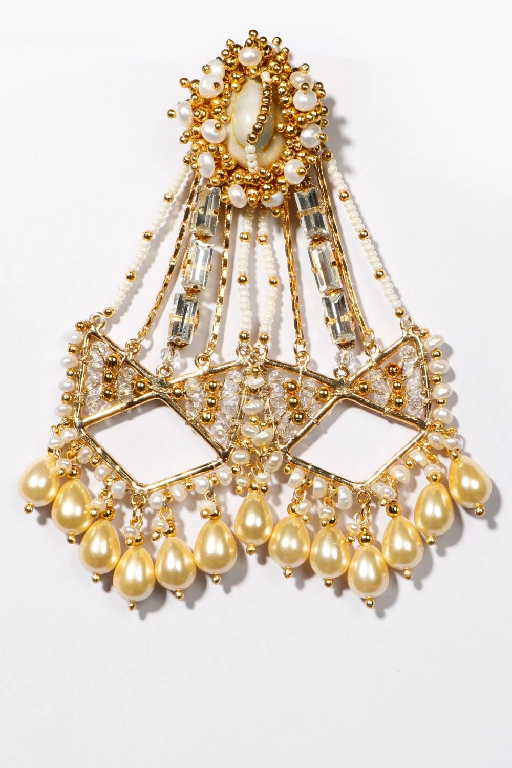 Material/Fabric : 22ct Gold Finish, Stones, Shells, Beads, Brass metal, Pearls, Thread