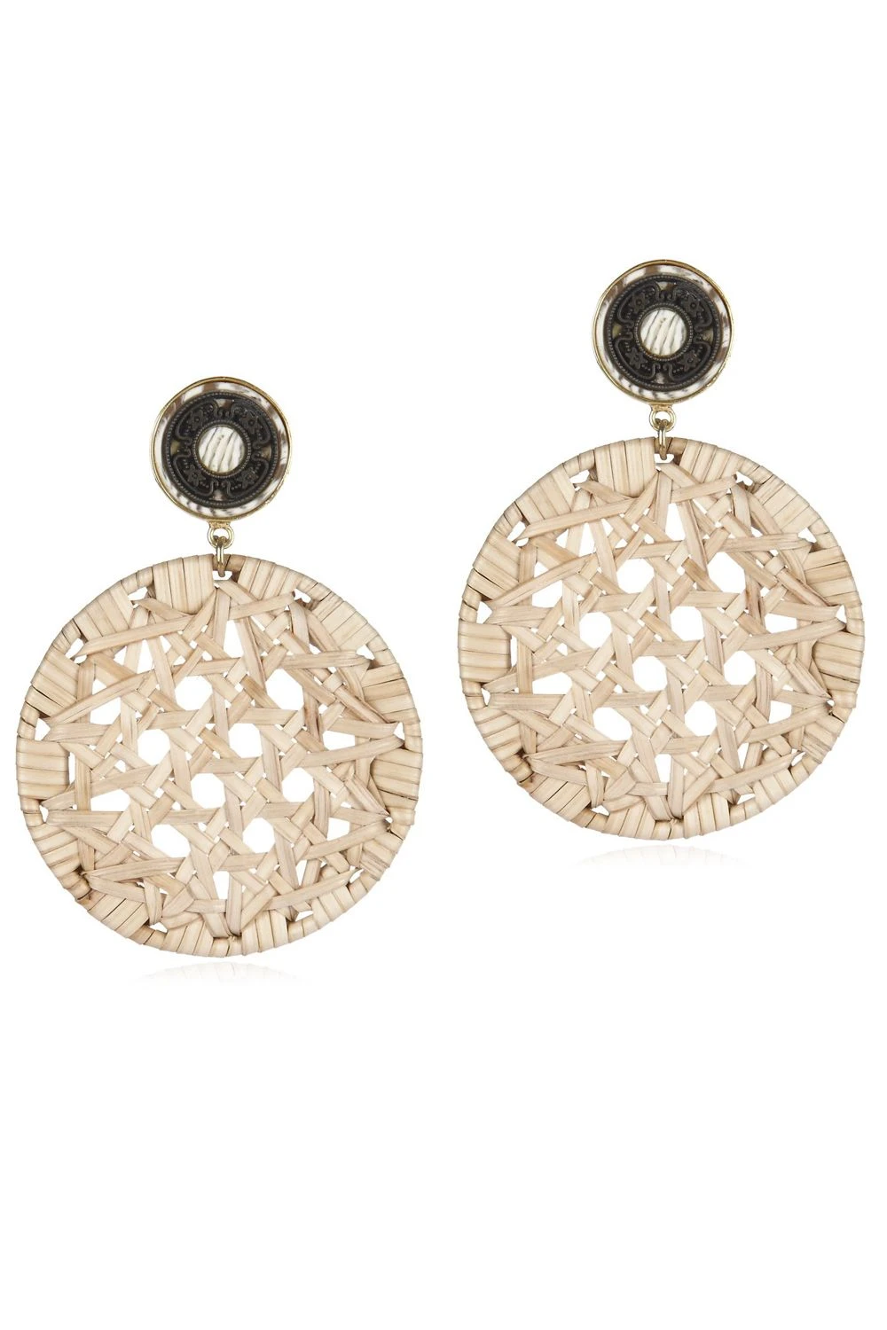 These black buttoned cane earrings are perfect for a beach holiday. This pair can be styles with anything from skirts to dresses.