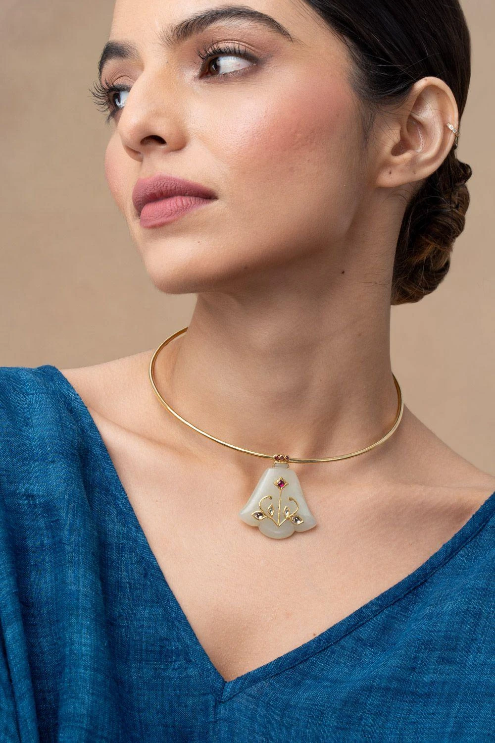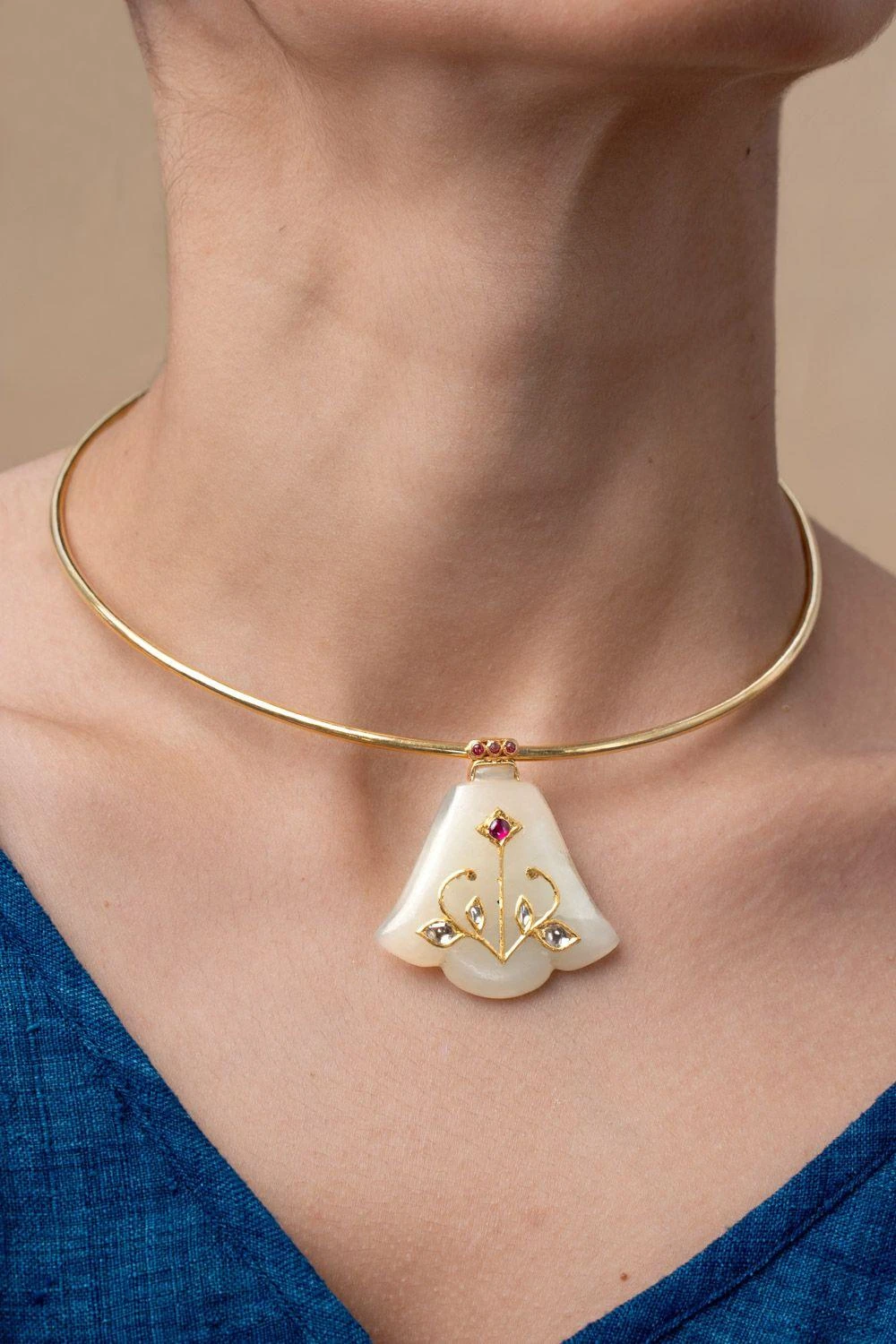 Material/Fabric : Serpentine Jade holdali, ruby, polki in 24 ct gold