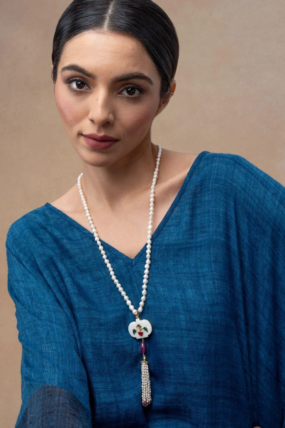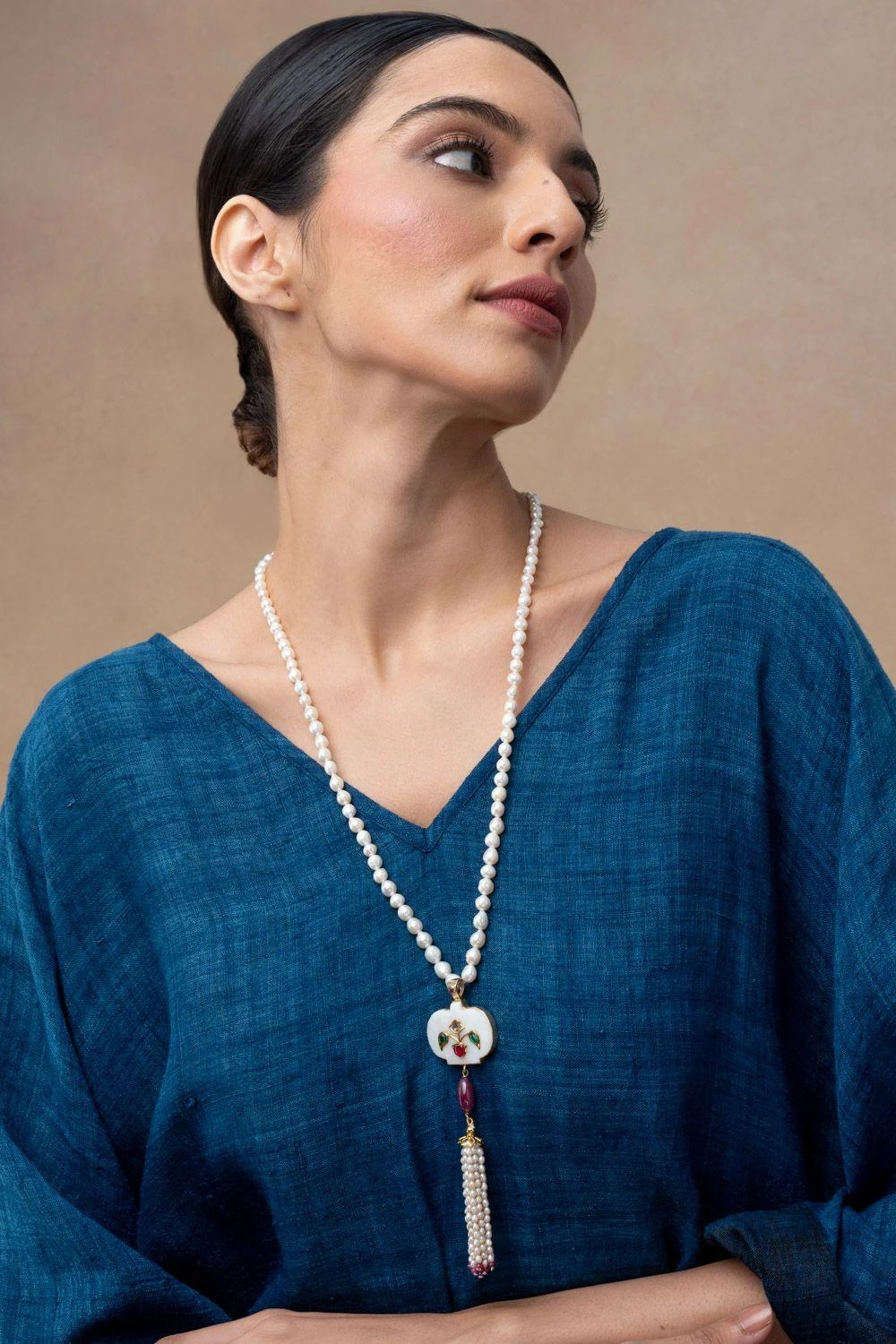 Elevate your style with this Hand-Carved White Agate Holdali Necklace. This exquisite piece embodies grace and refinement. The intricate craftsmanship of the white agate pendant is a testament to timeless beauty. Adorn yourself with elegance.