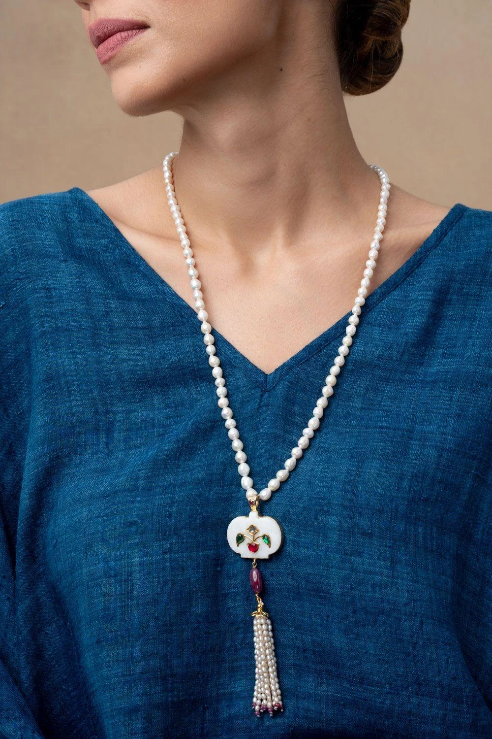 Material/Fabric : Agate holdali, emerald, polki, fresh water pearls