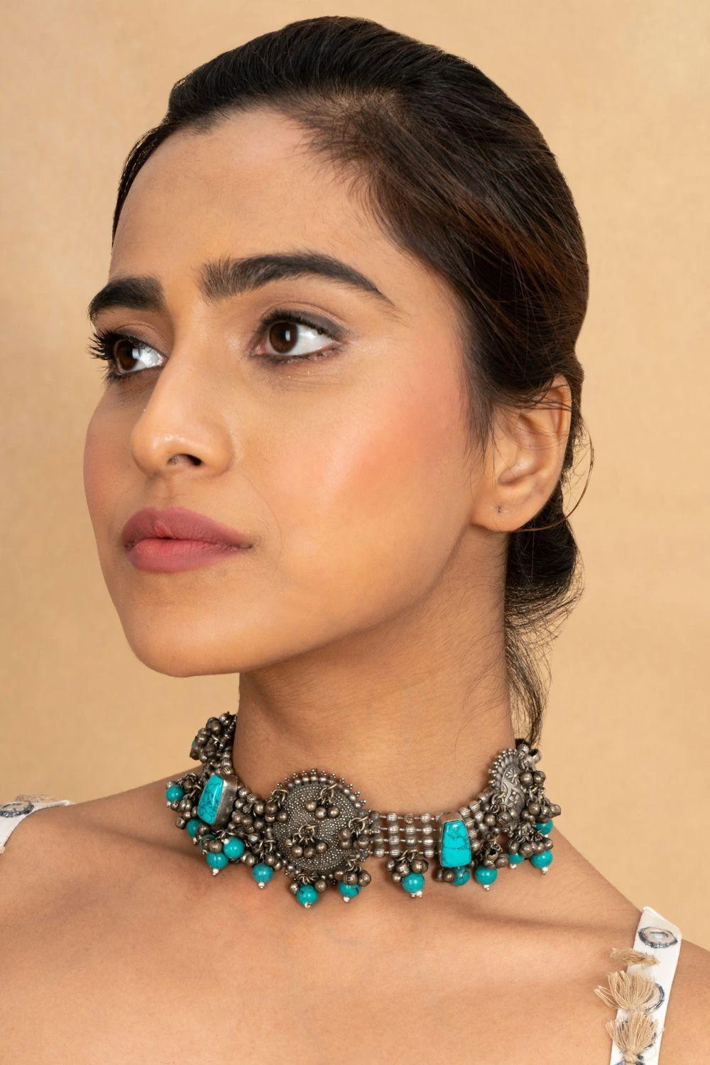 Indulge in the captivating allure of this antique silver necklace. Its intricate design and timeless charm transport you to a world of vintage elegance. Adorn yourself with this exquisite piece, as it becomes a statement of refined style.
